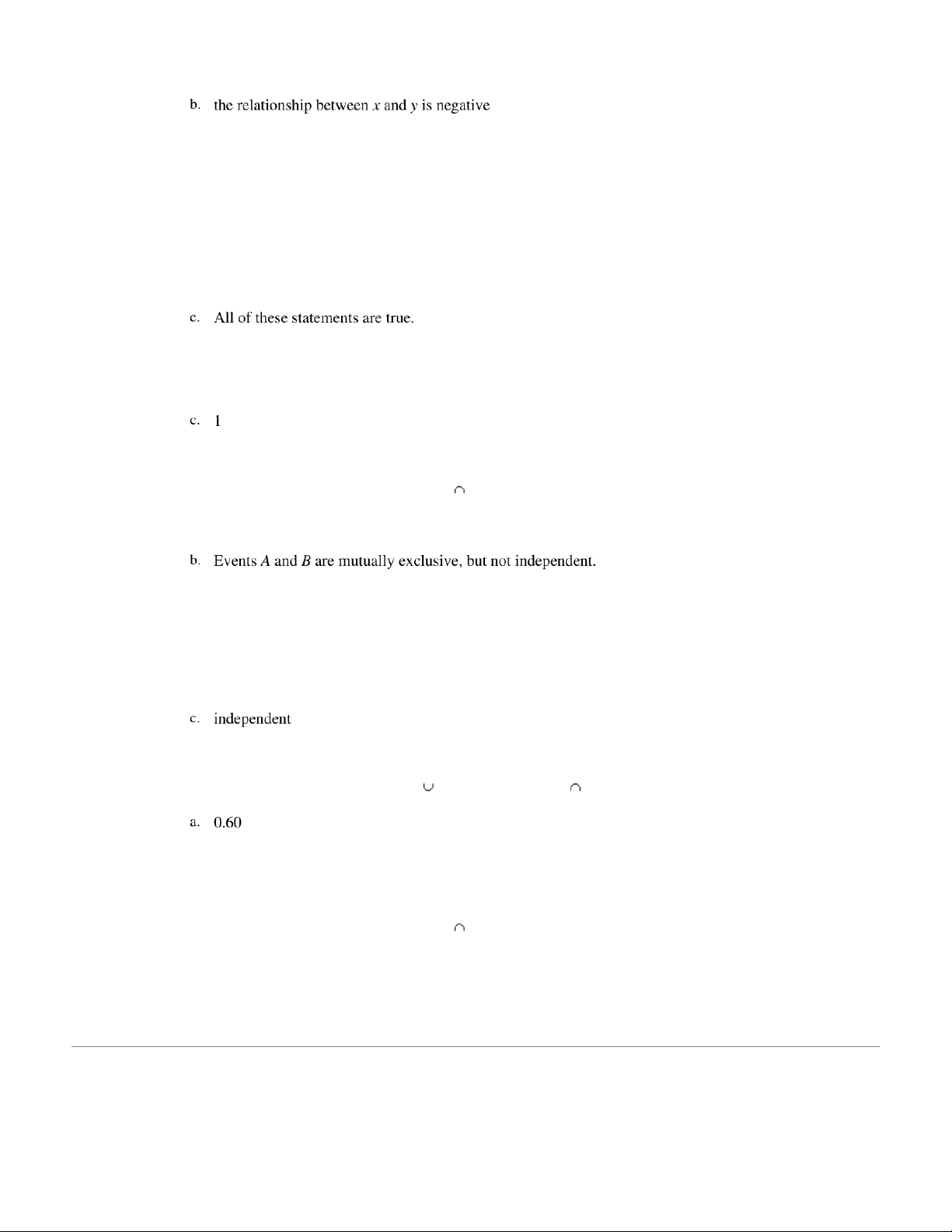 ____ 9. Suppose P(A) = 0.4, P(B) = 0.3, and P(A B) = 0. Which one of the following statements correctly