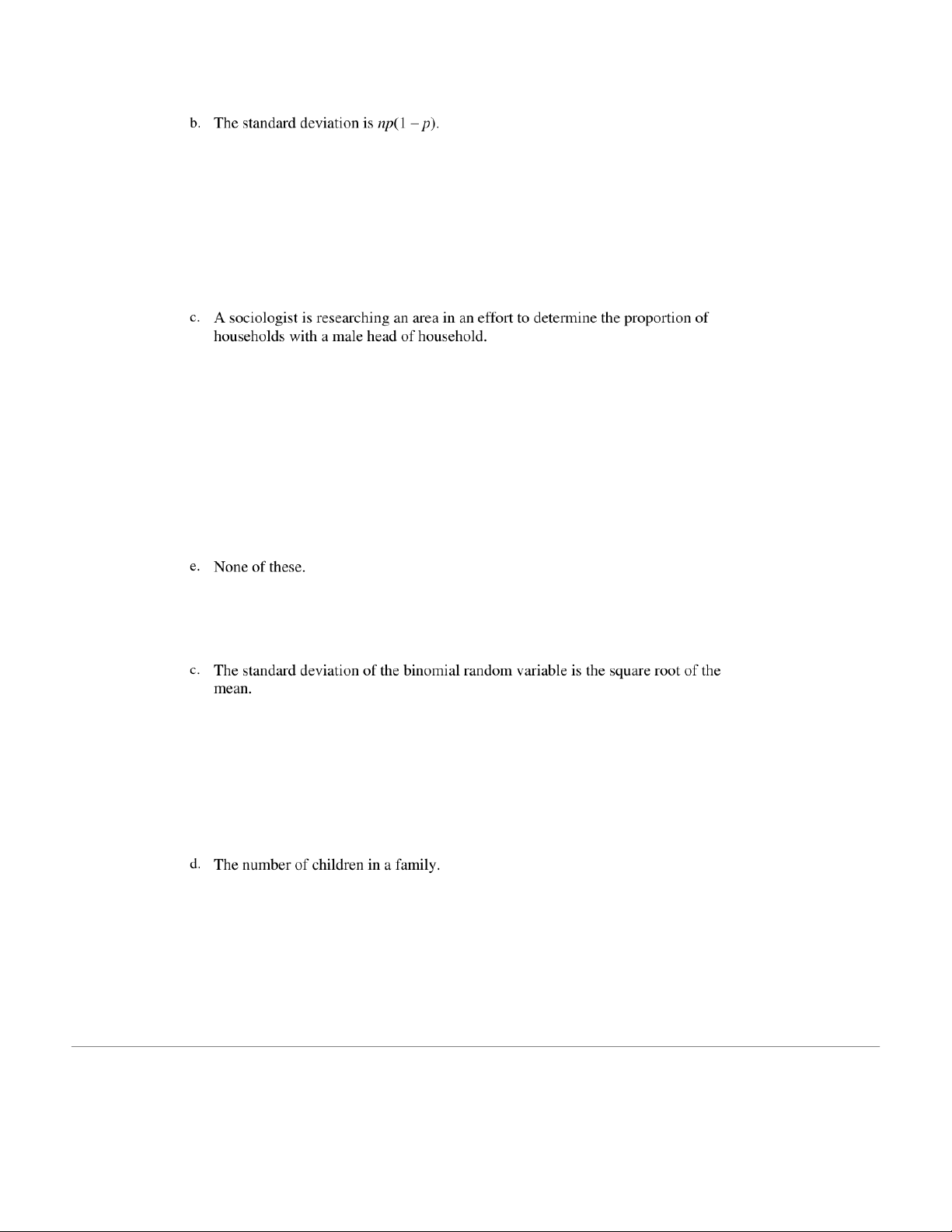 ____ 20. Which of the following is not a characteristic of a binomial experiment?