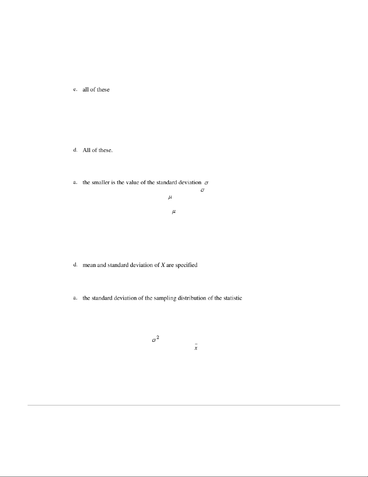 ____ 31. The standard error of a statistic used as an estimator of a population parameter is: