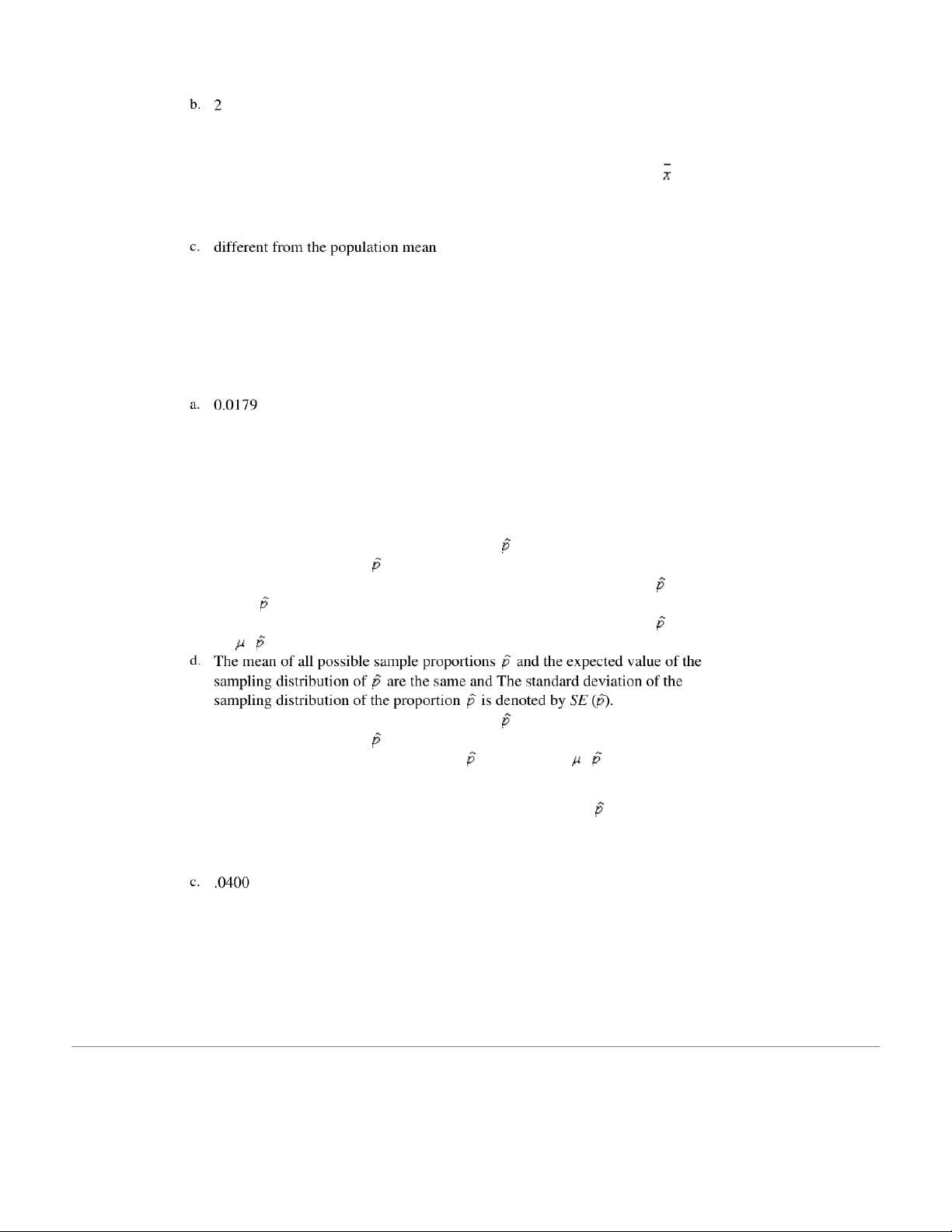 b. The standard deviation of the sampling distribution of the proportion is denoted by SE ( ).