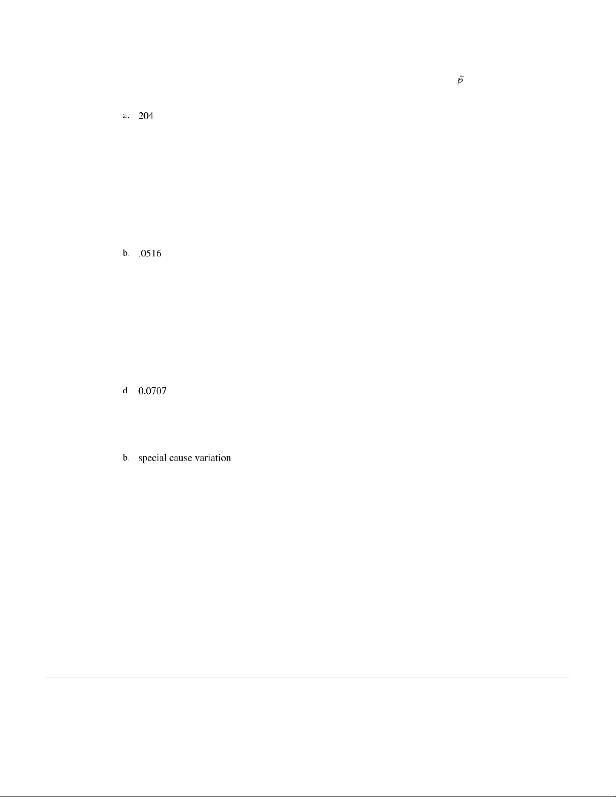 defectives in each sample was counted. The average sample proportion was 0.05. The upper control limit for the p chart is: a. 0.0475 b. 0.0206 c. 0.0293 e. 0.0635