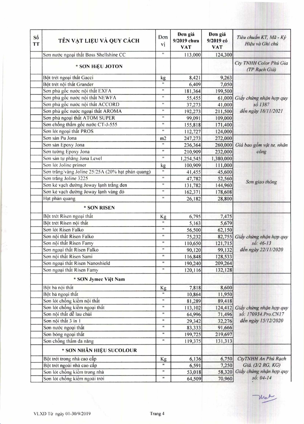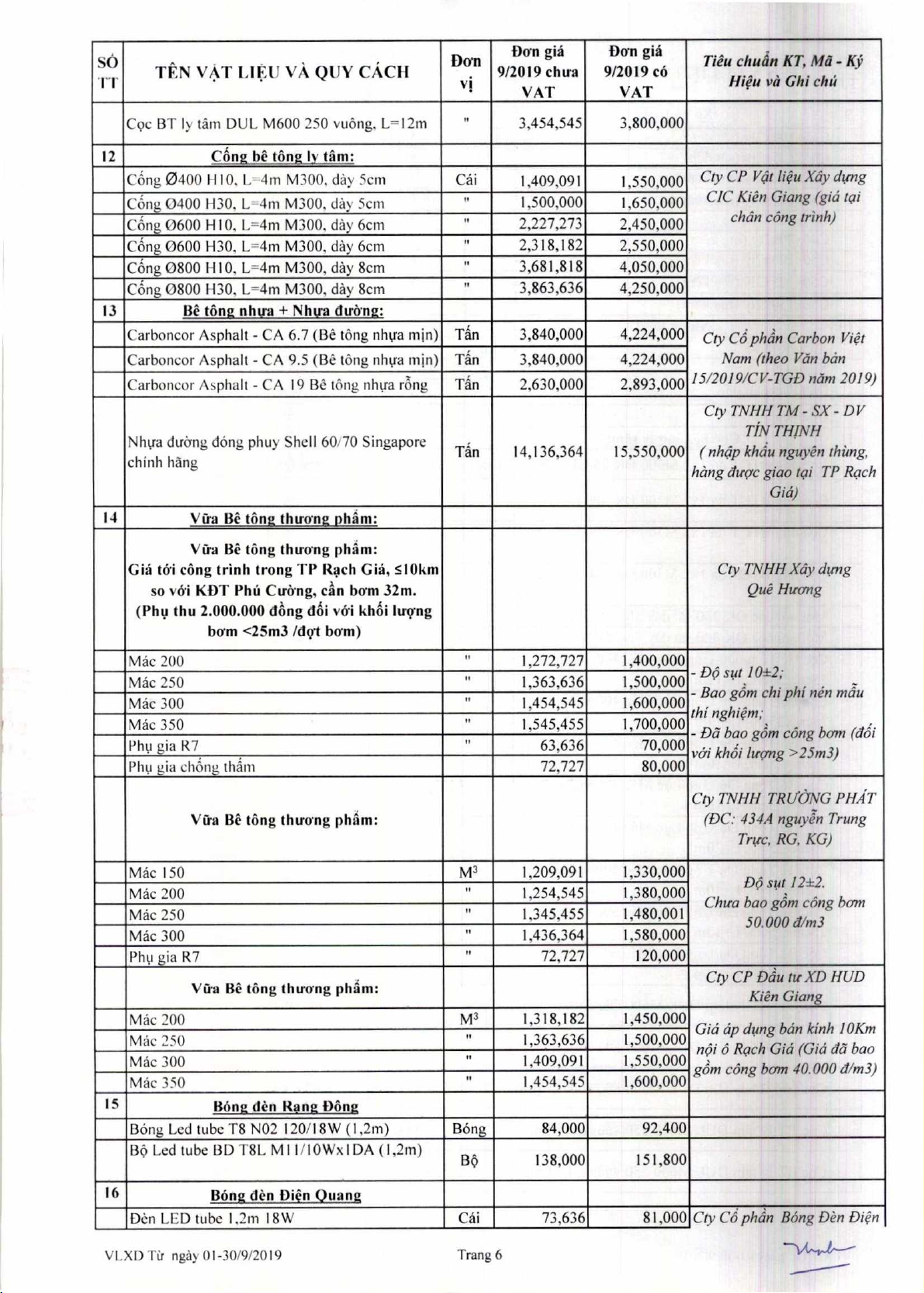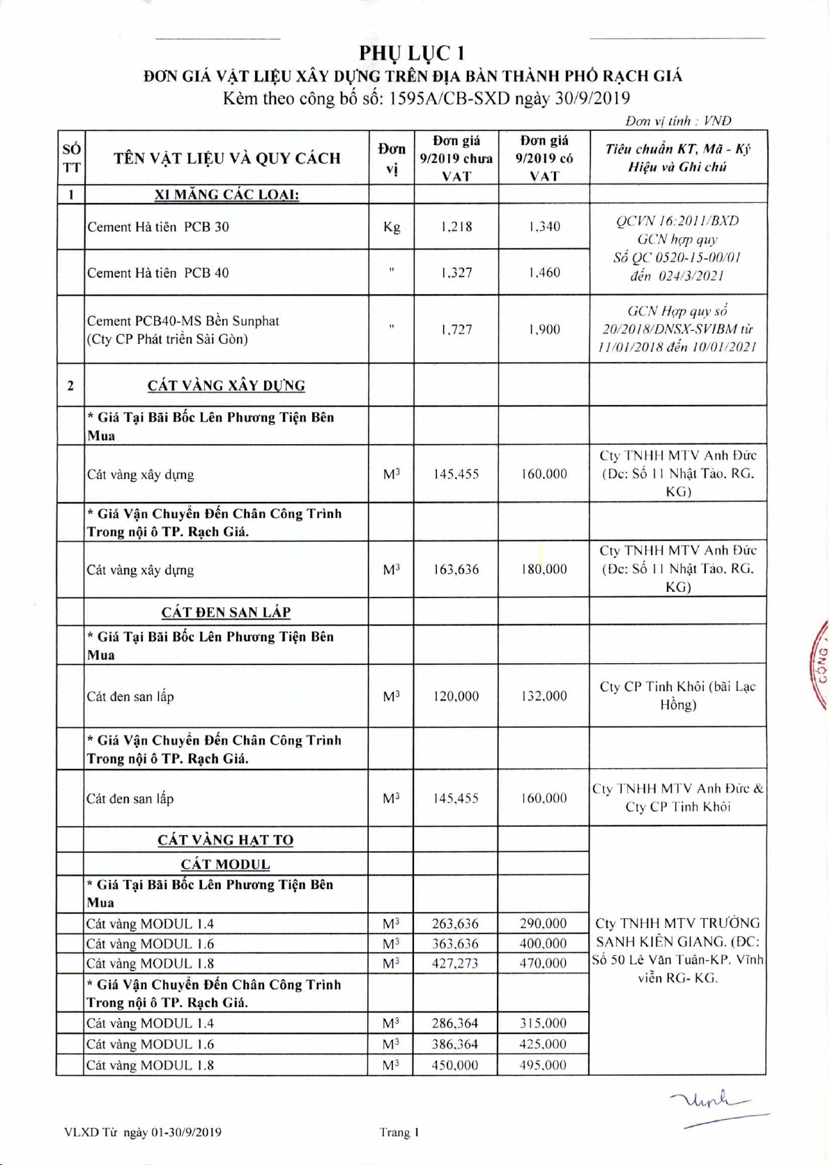Sa Xay dung cong b6 don gia VAt lieu xay dung tir ngay 01 den ngay 30 thing