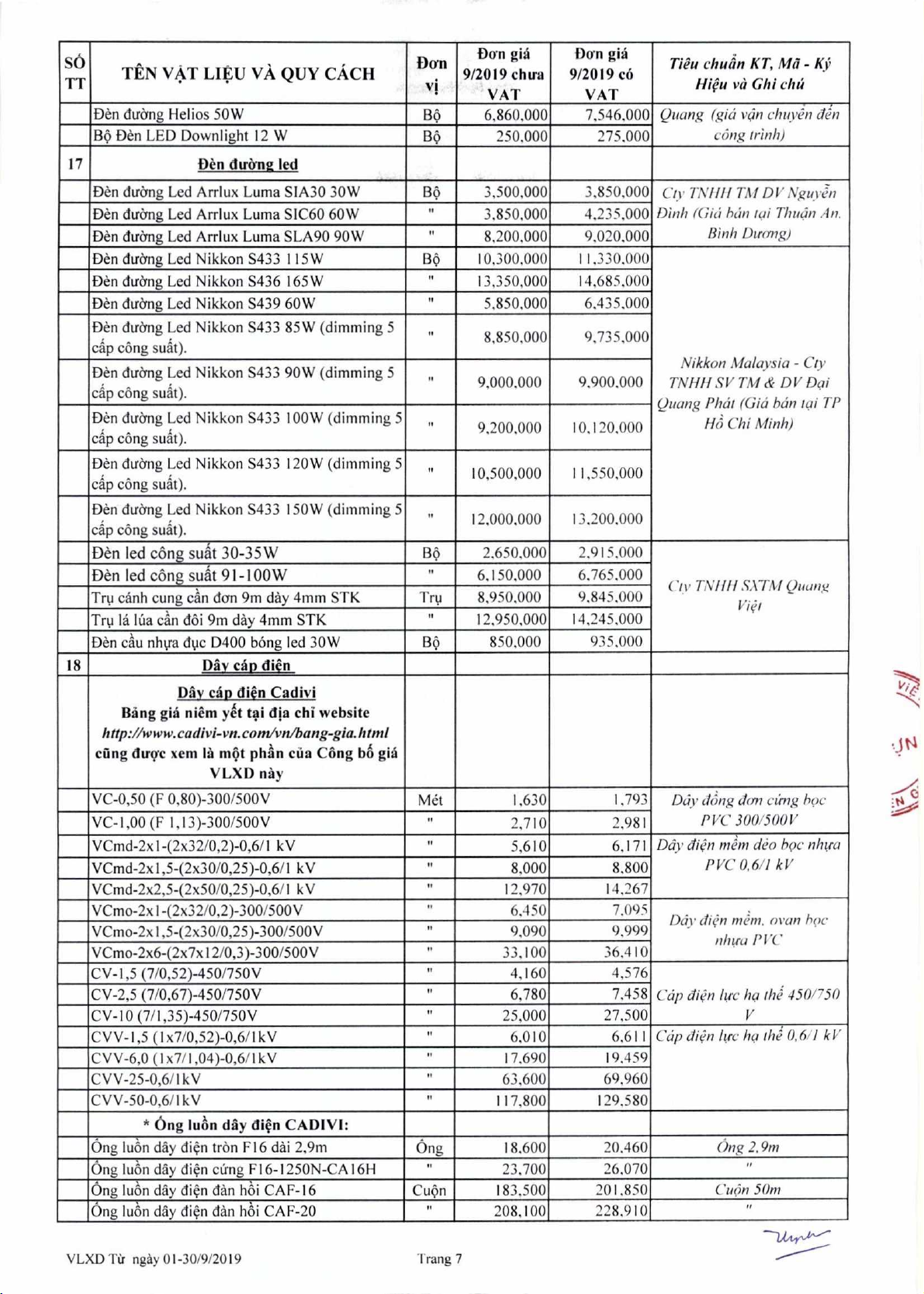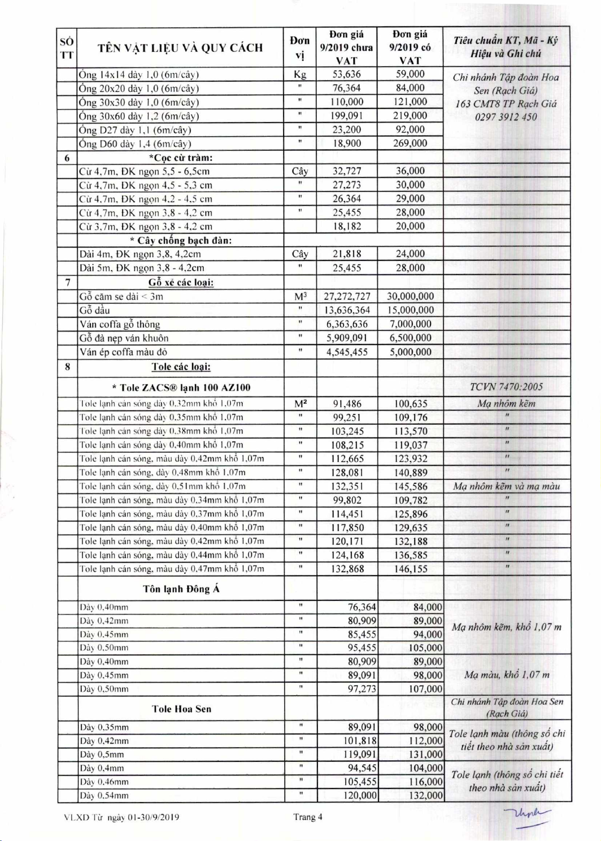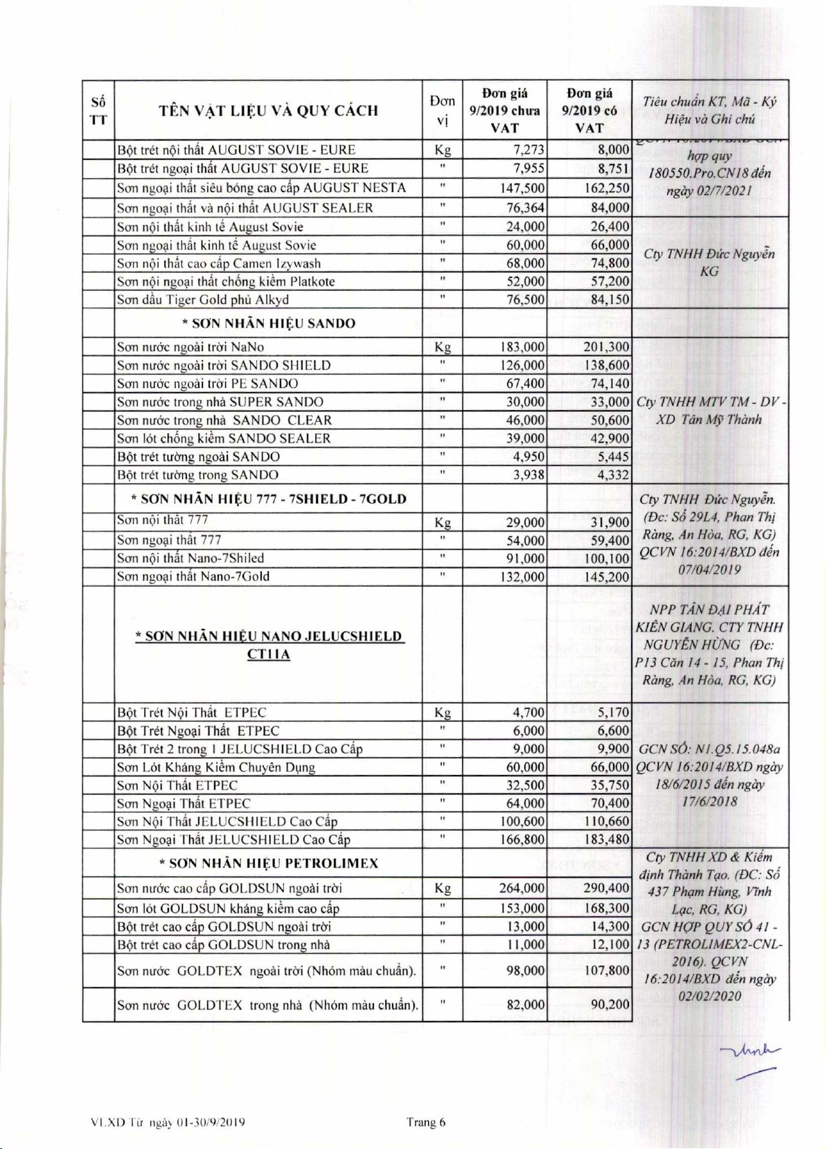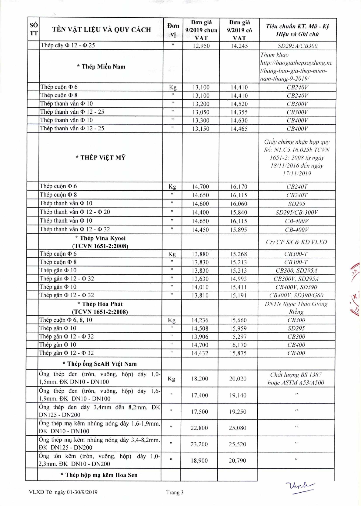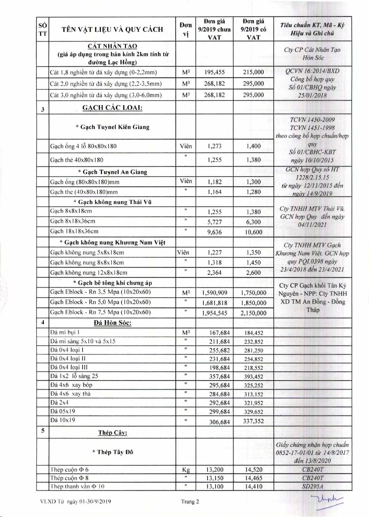 Dan gia V4t lieu xay dm thing 9 nam 2019