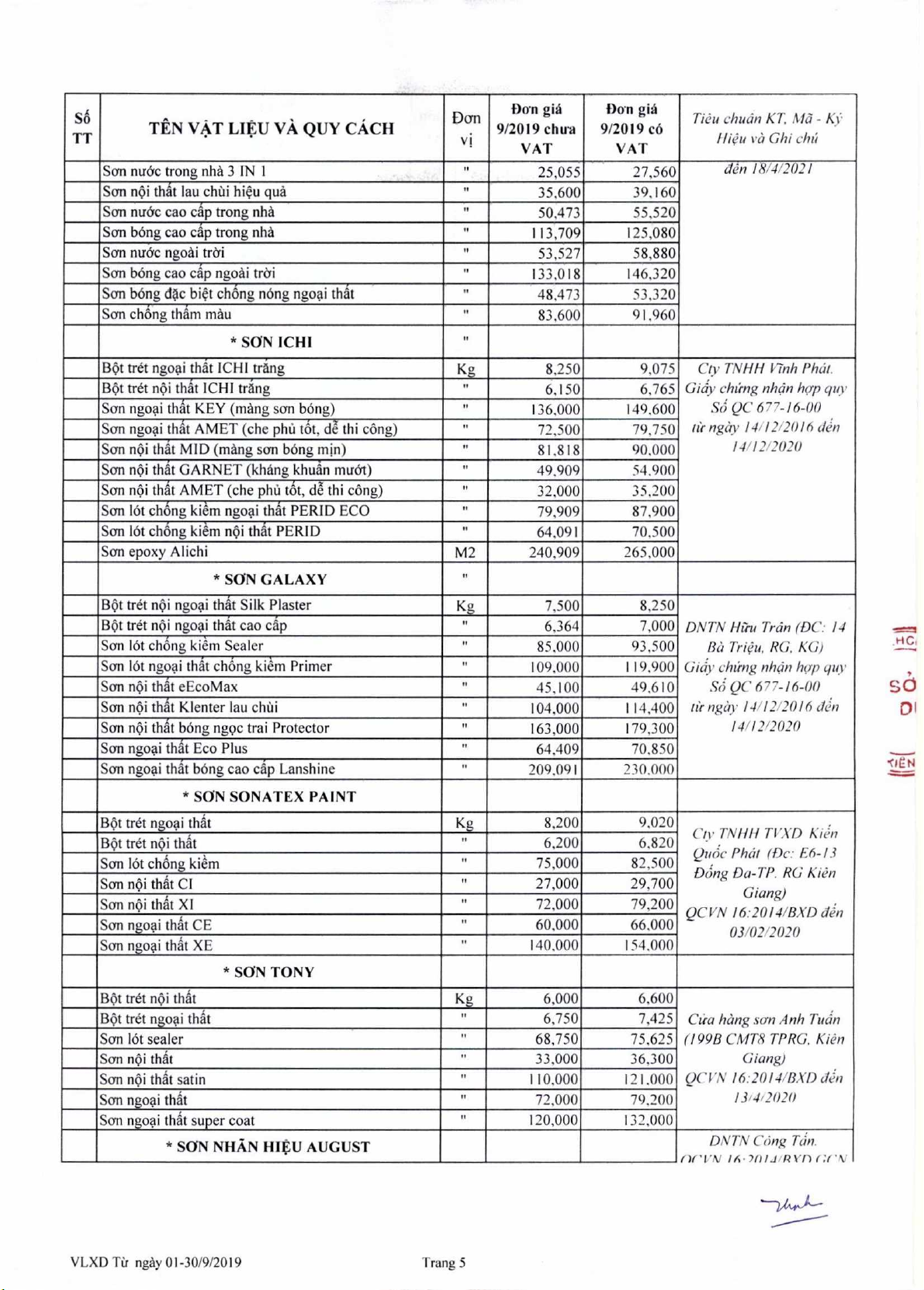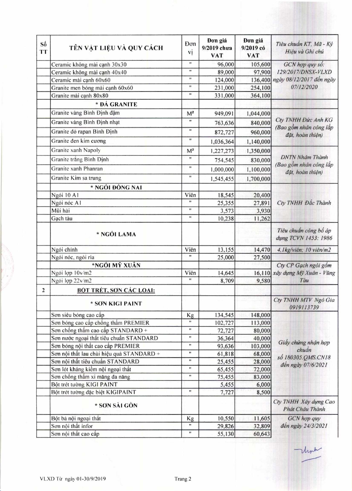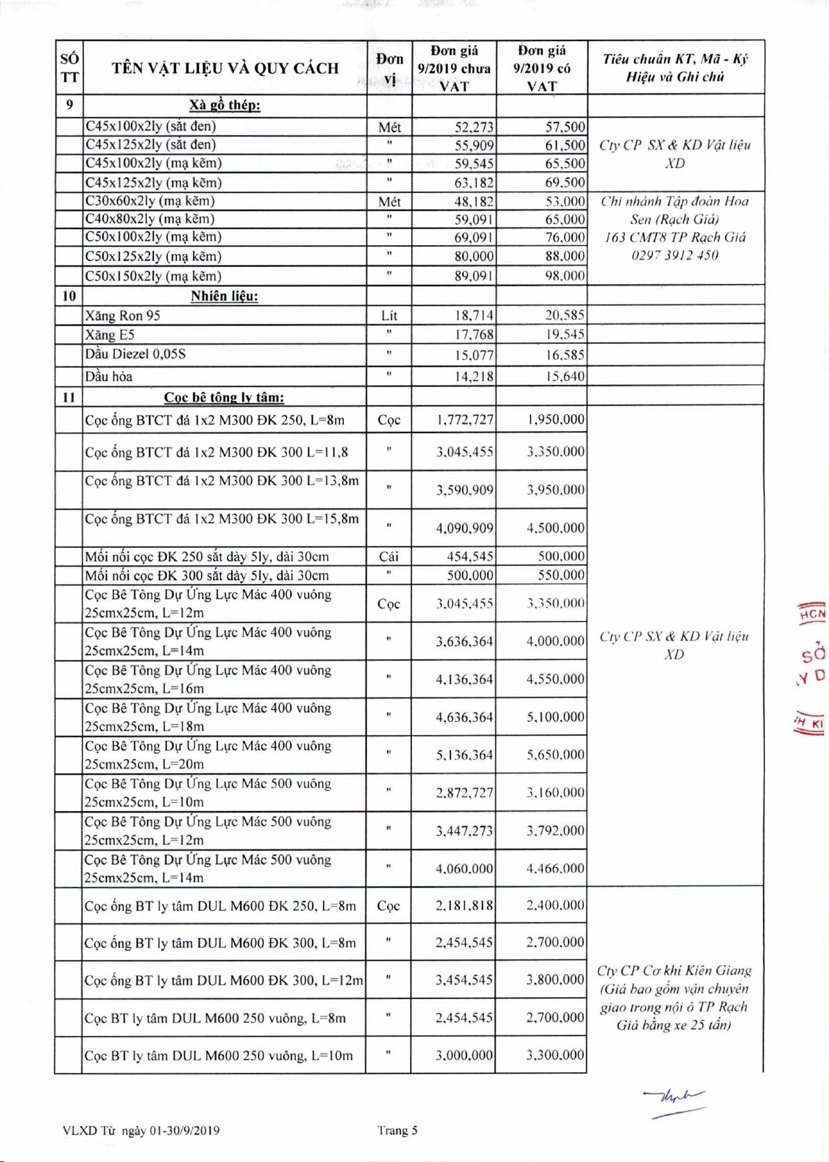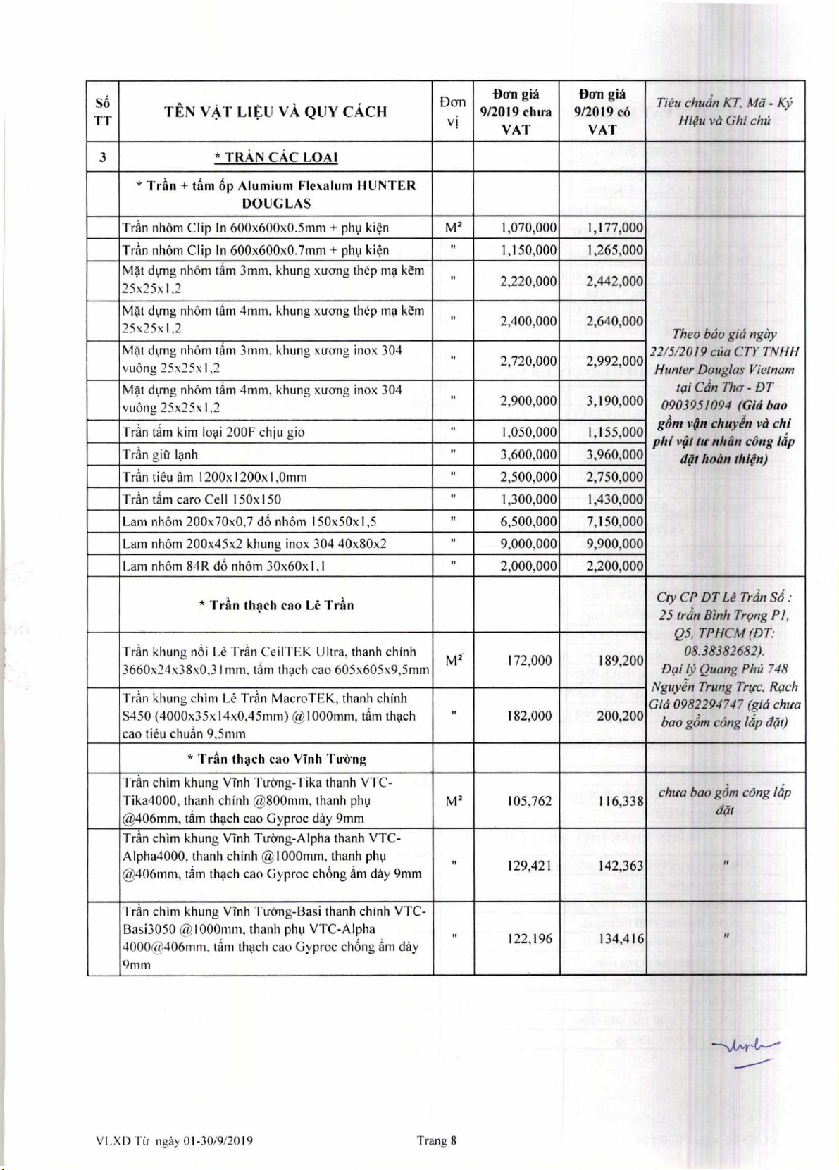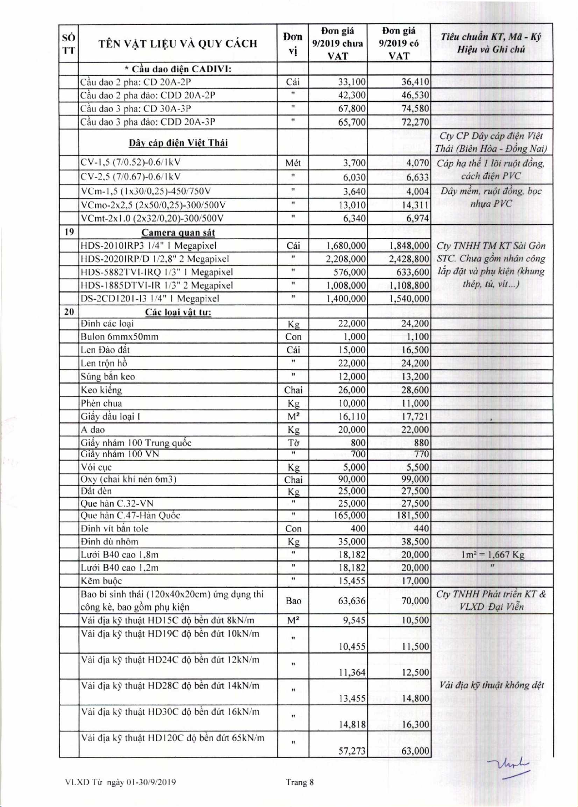 Dan gia V4t lieu xay dm thing 9 nam 2019