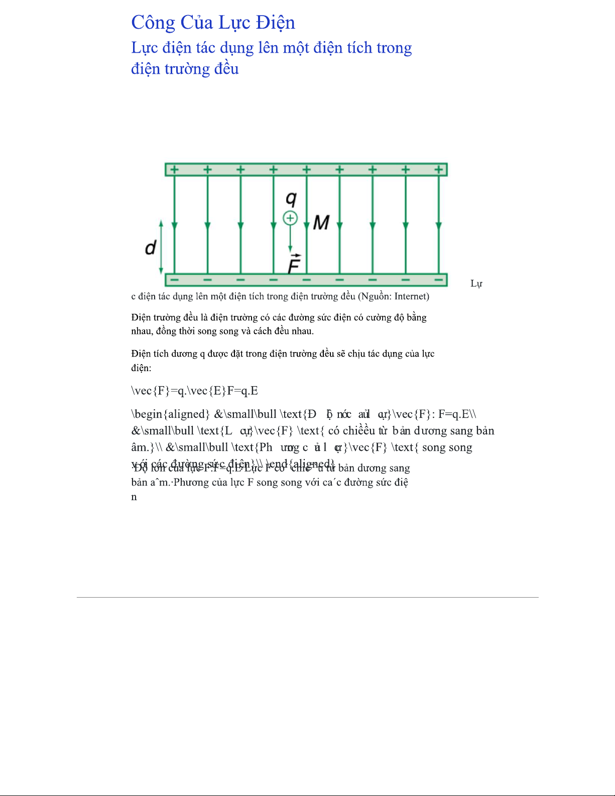Công Của Lực Điện Trong Điện Trường Đều - Tài Liệu Học Tập