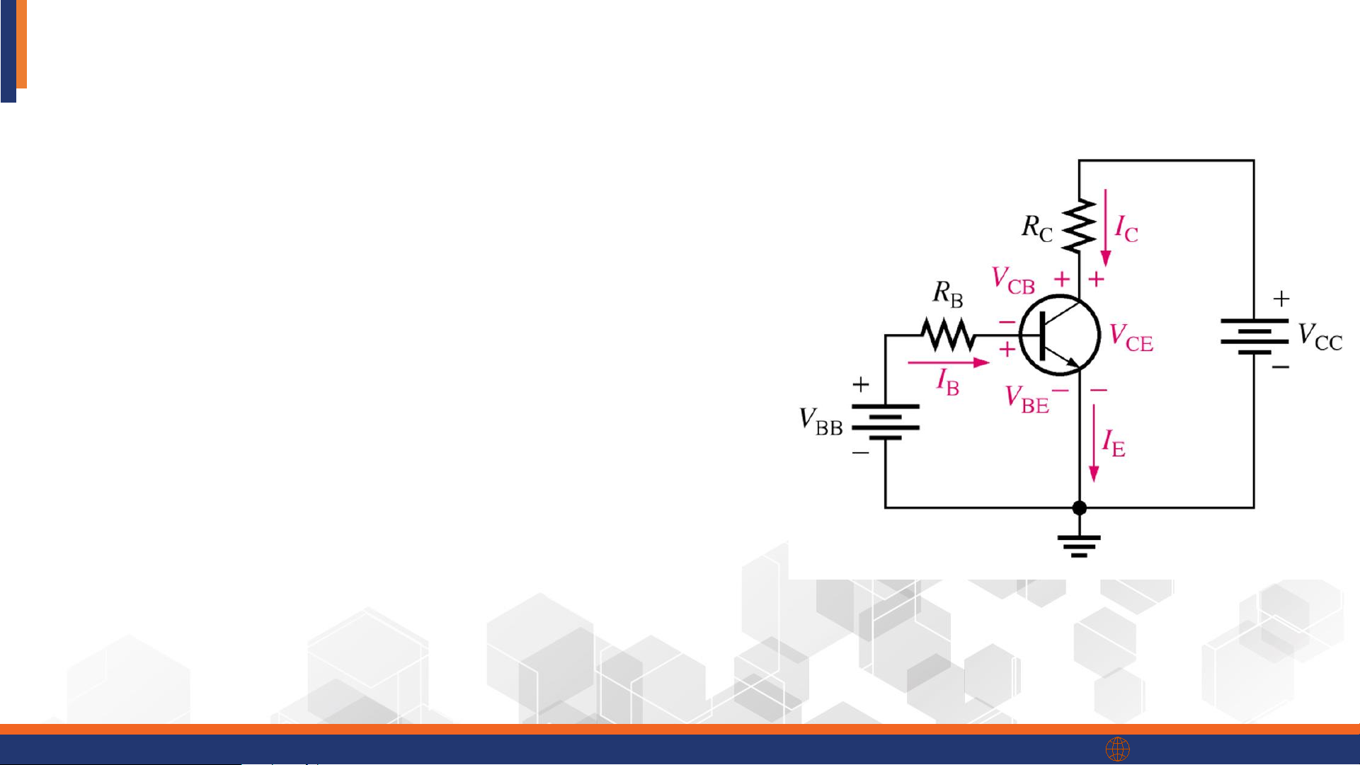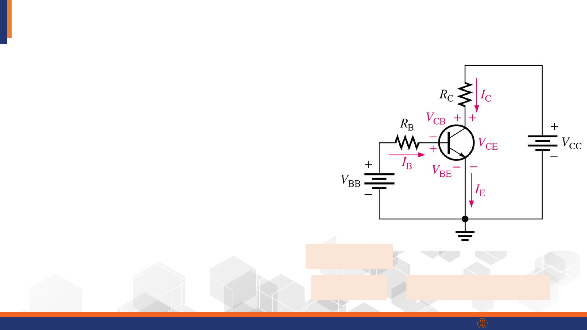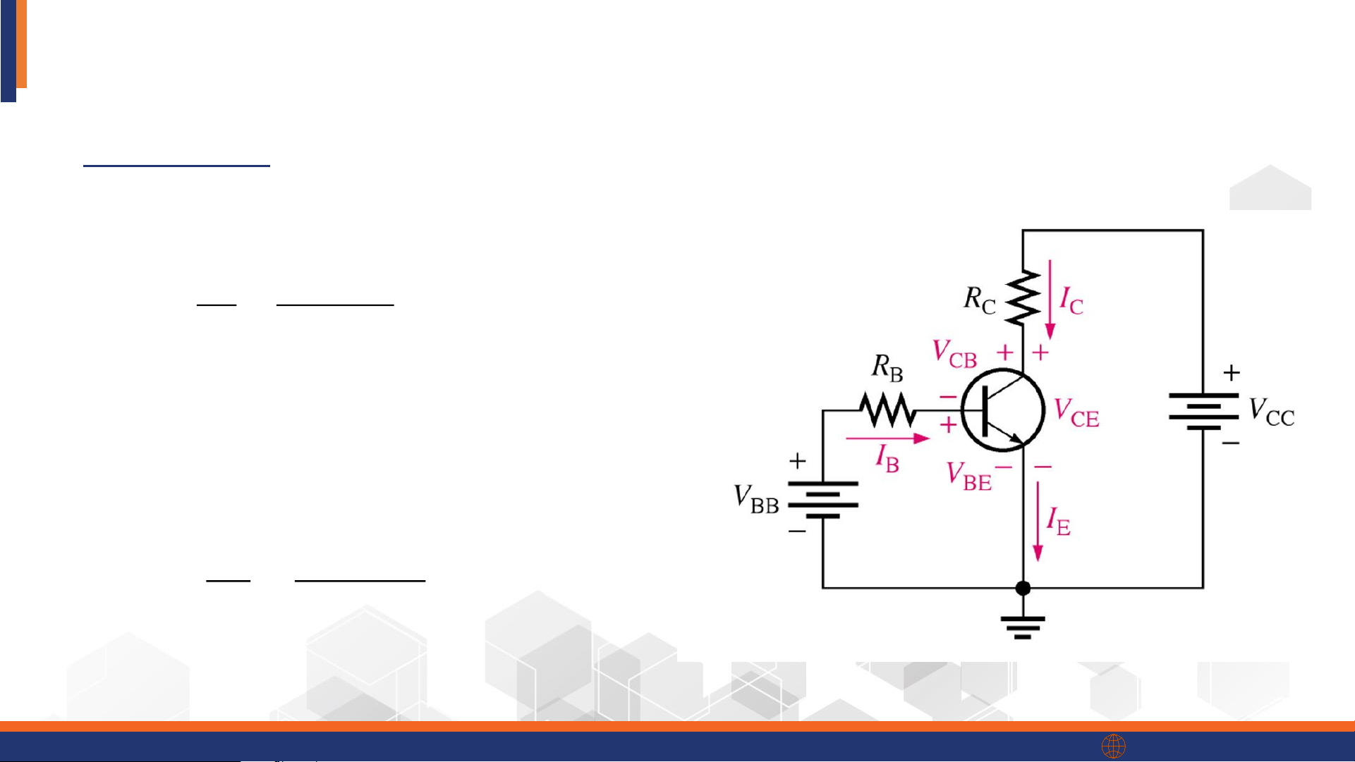 When the base-emitter junction is forward-biased: VBE ≅ 0.7 V VR = I B BRB : by Ohm’s law