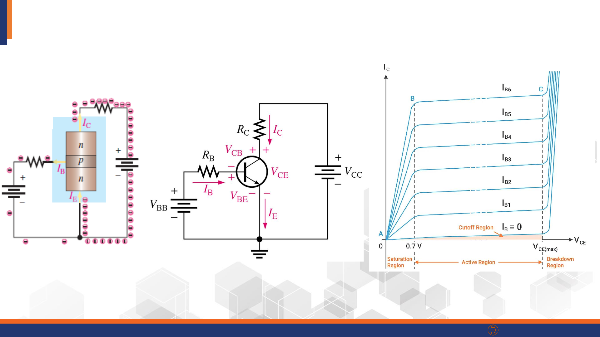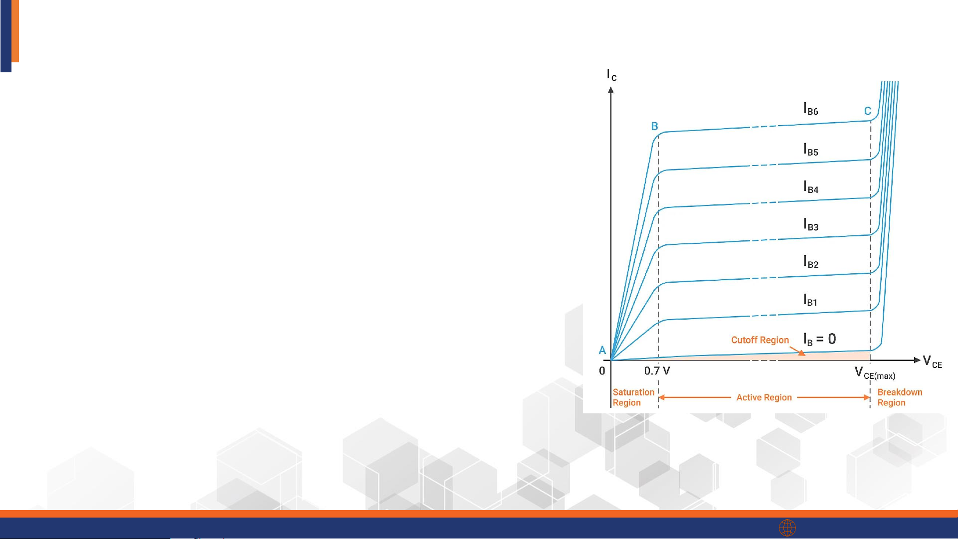• When VCE exceeds 0.7 V, the BC junction becomes reverse-biased → Active region