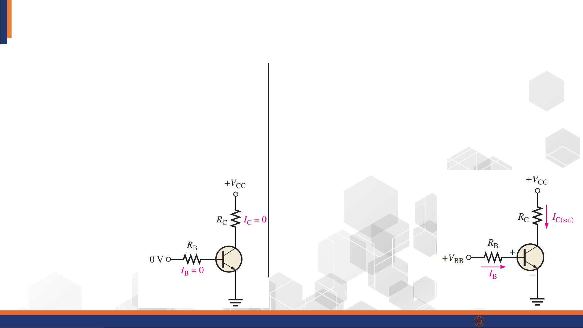 • No current flow through the BJT. • VCE is small (~0.2 V) • IC=IE=IB= 0