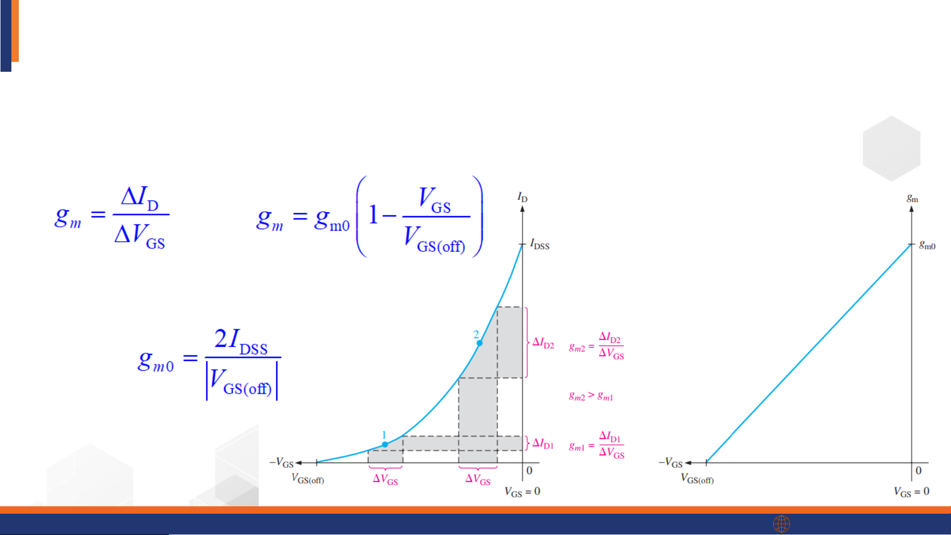 • The forward transconductance (gm) is the ratio of a change in output current (ΔID)