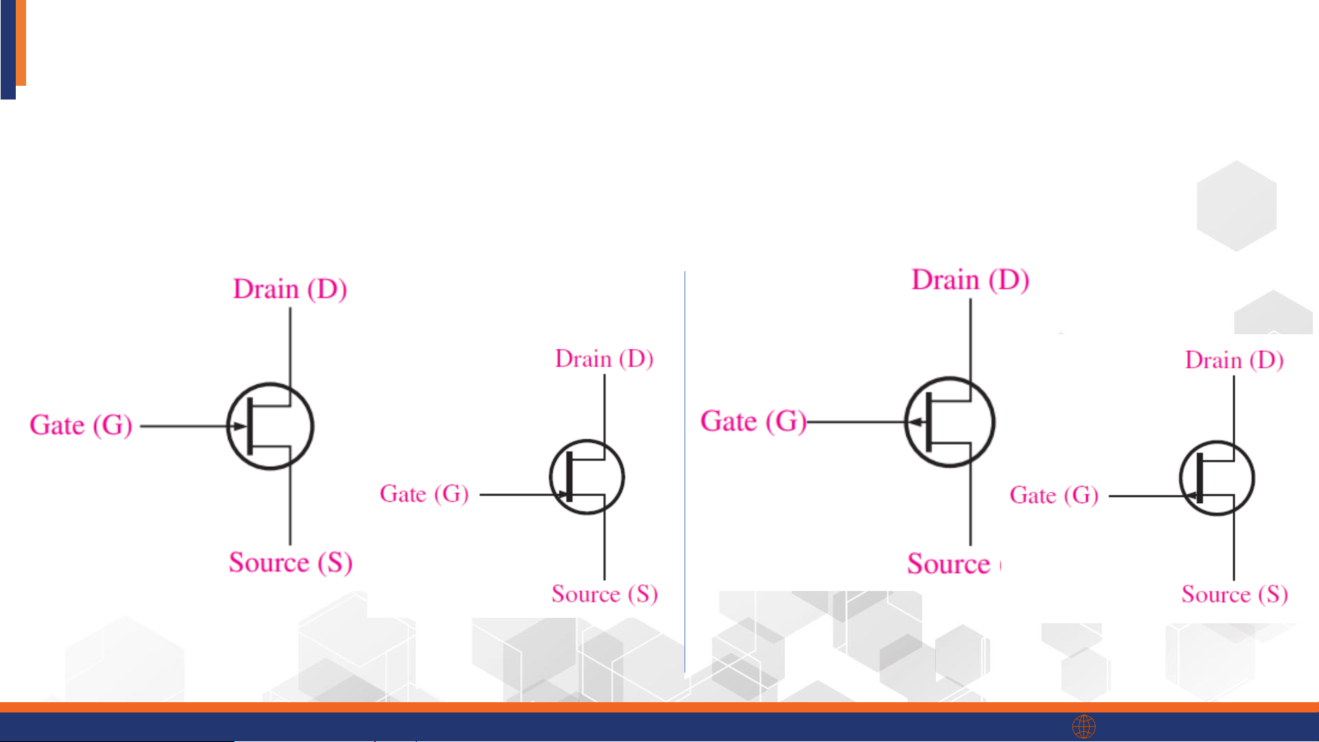 • Direction of the arrow indicates the PN junctions: From P → to N n-channel JFET p-channel JFET phenikaa-uni.edu.vn IV.1. The JFET