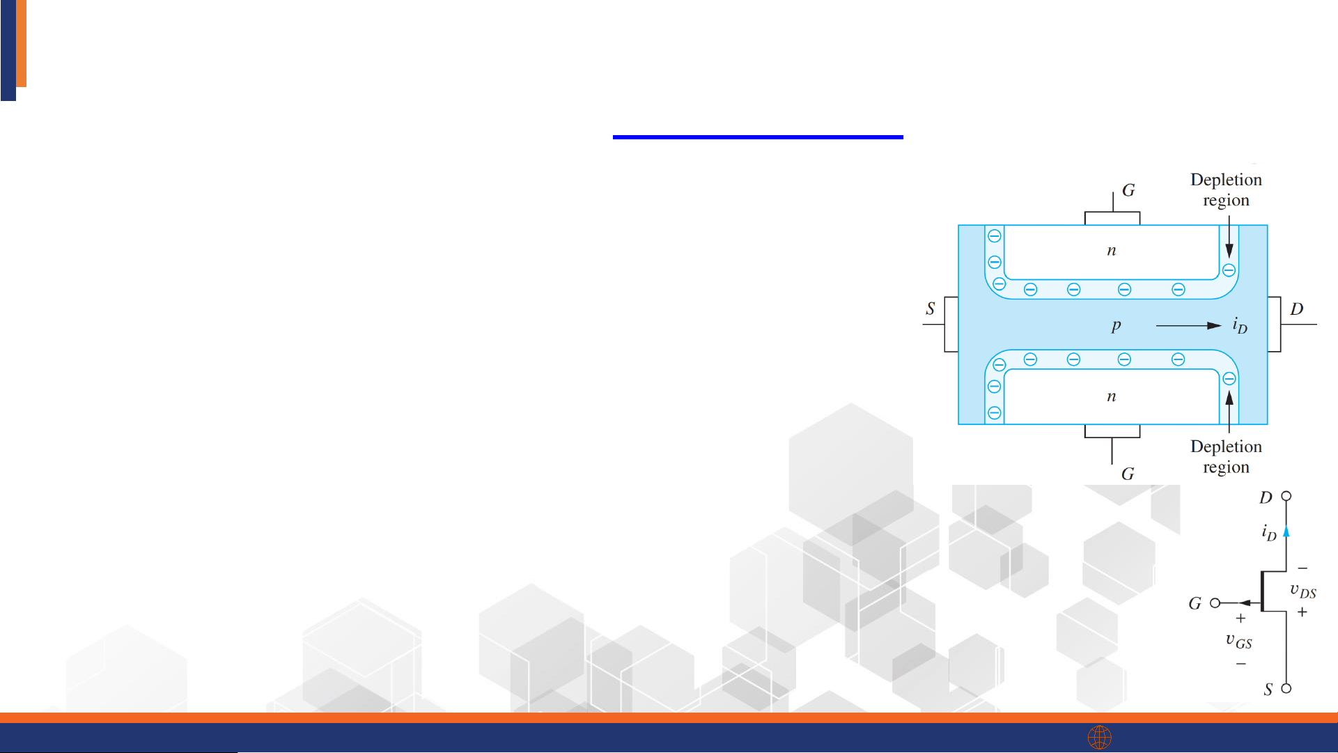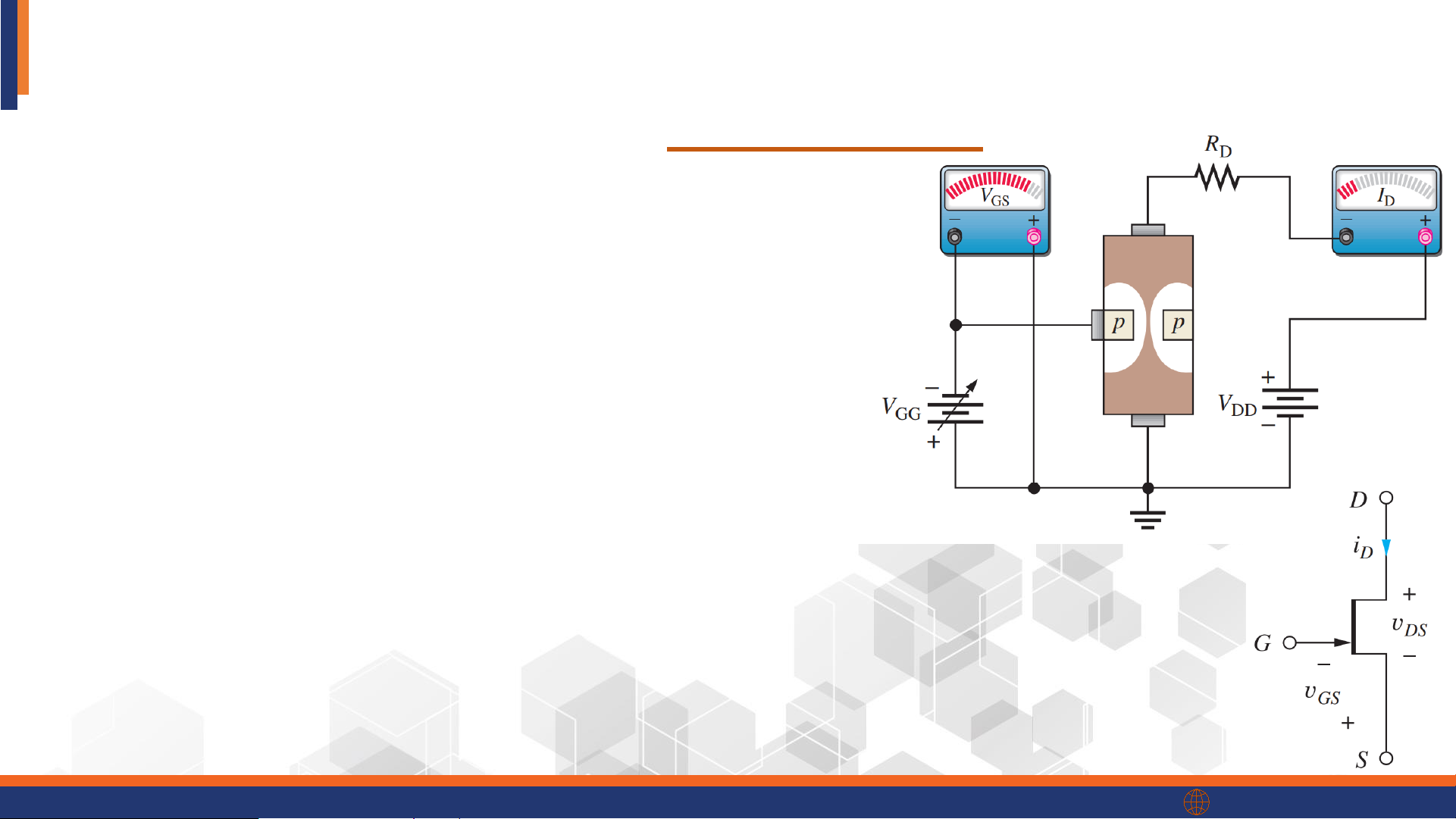 The JFET – Basic Operation of n-channel JFET ❖ VGS controls ID • VGS = 0:
