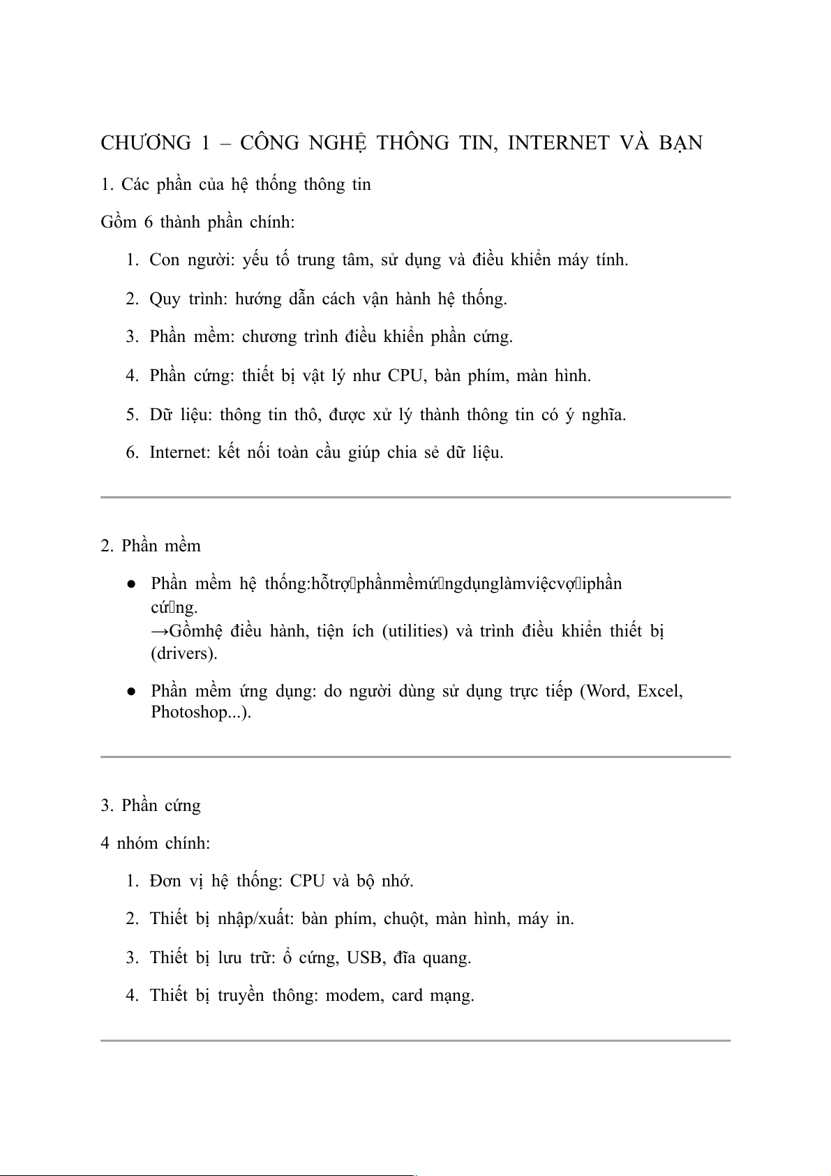 CHƯƠNG 1 – CÔNG NGHỆ THÔNG TIN, INTERNET VÀ BẠN