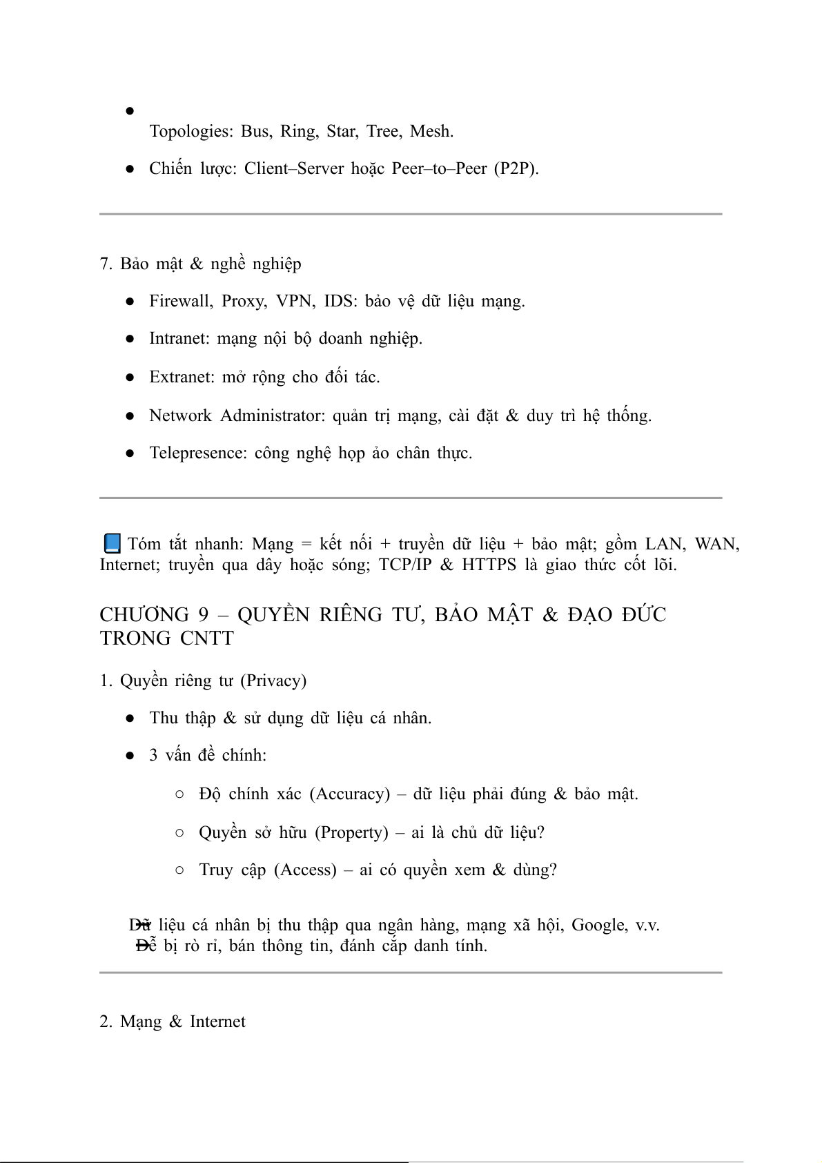 CHƯƠNG 9 – QUYỀN RIÊNG TƯ, BẢO MẬT & ĐẠO ĐỨC TRONG CNTT
