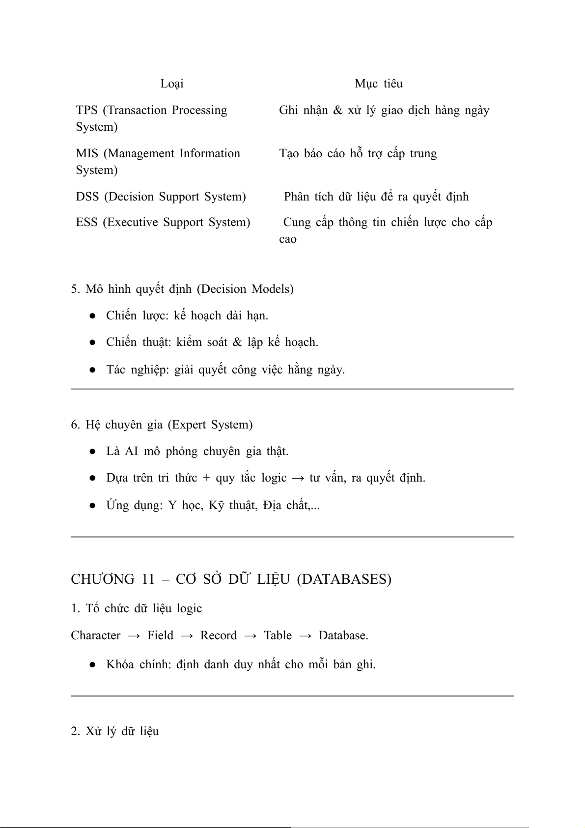 CHƯƠNG 10 – HỆ THỐNG THÔNG TIN (INFORMATION SYSTEMS) 1. Hệ thống thông tin