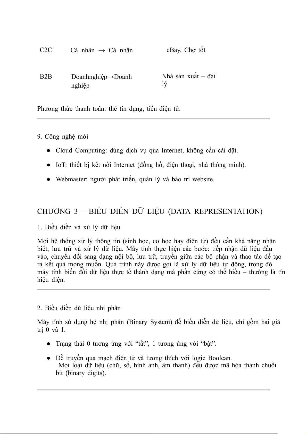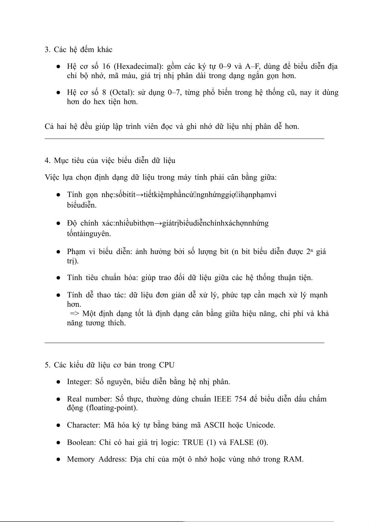 Mọi loại dữ liệu (chữ, số, hình ảnh, âm thanh) đều được mã hóa thành chuỗi bit (binary digits). 3. Các hệ đếm khác