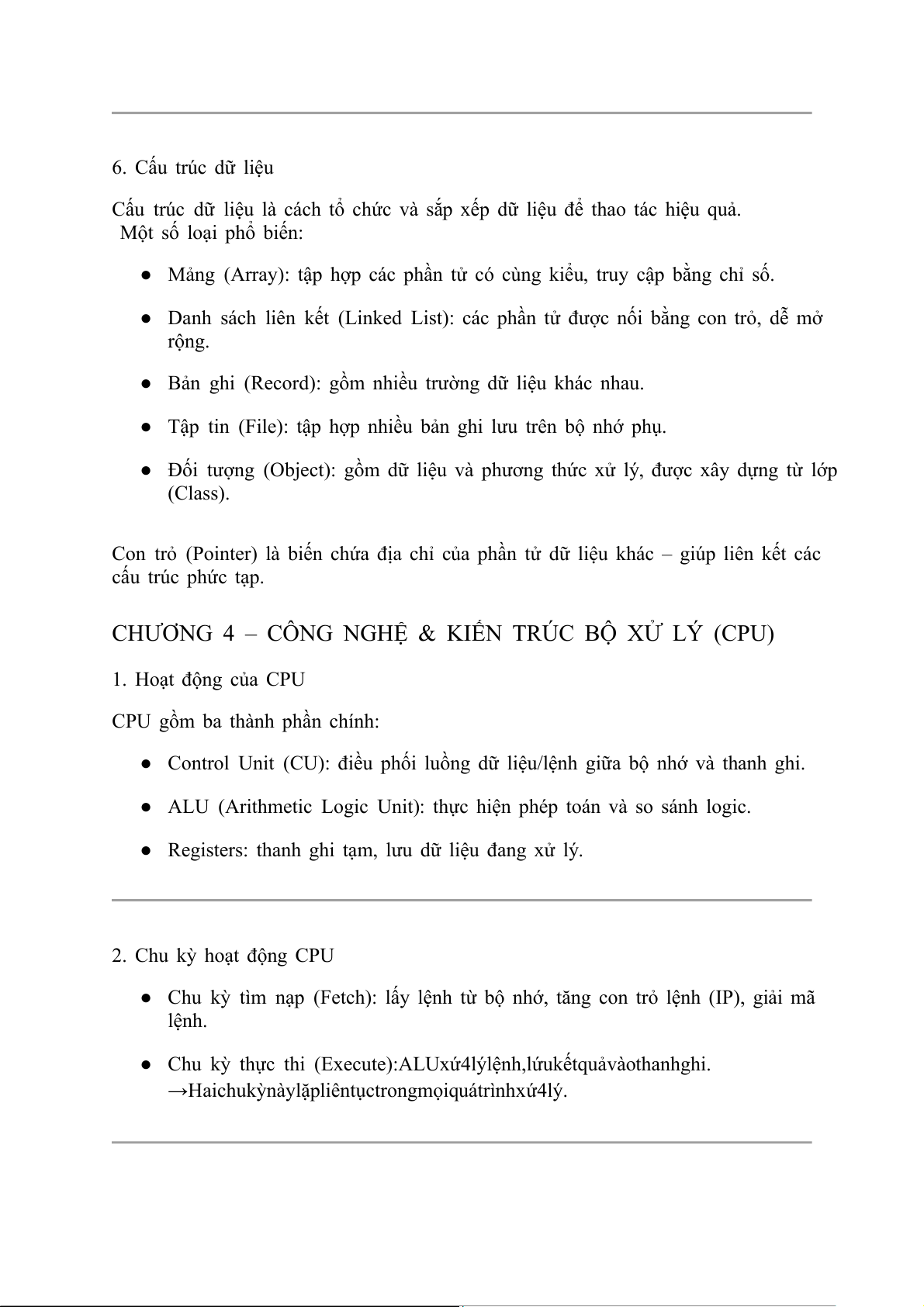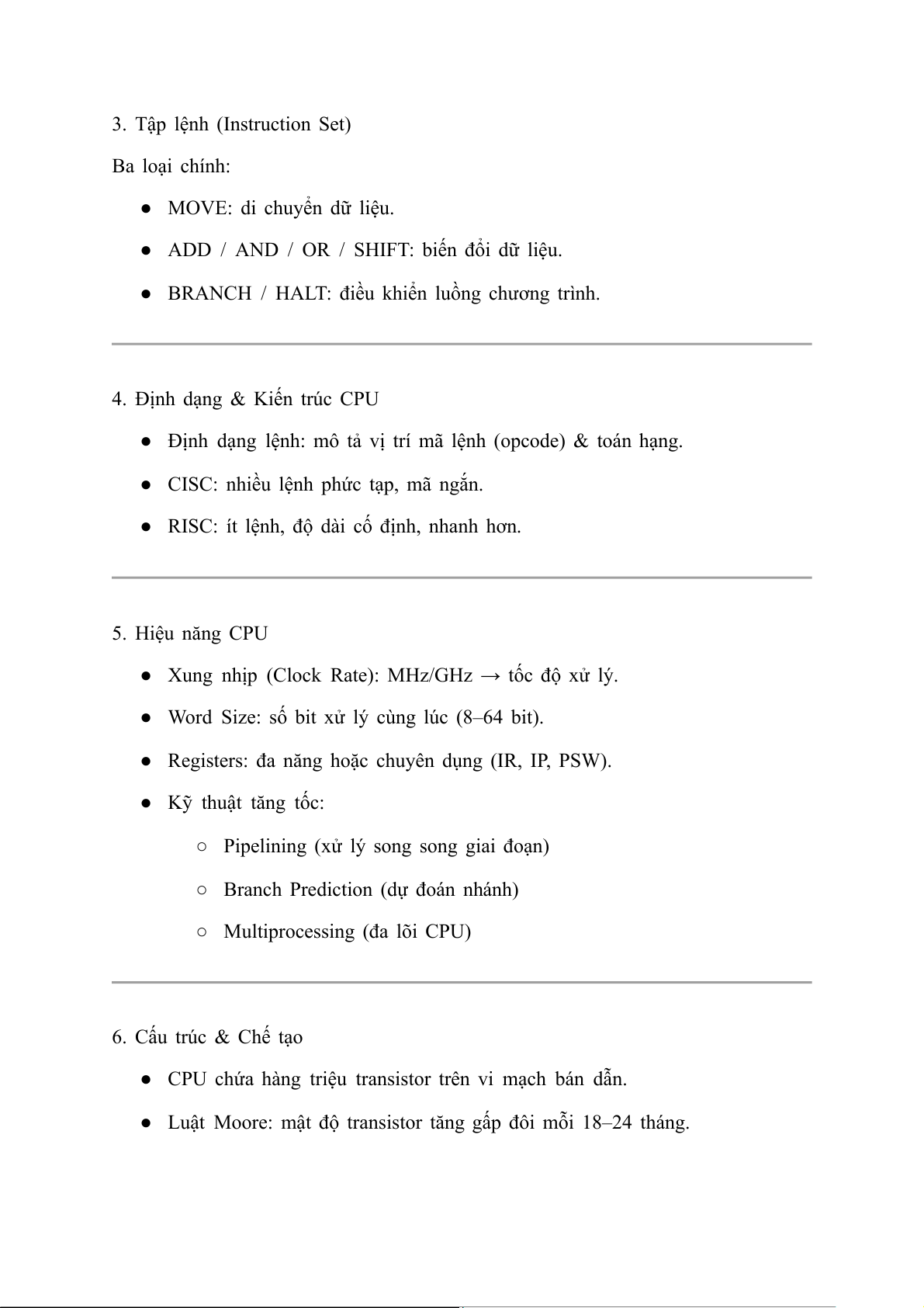 ● Control Unit (CU): điều phối luồng dữ liệu/lệnh giữa bộ nhớ và thanh ghi.