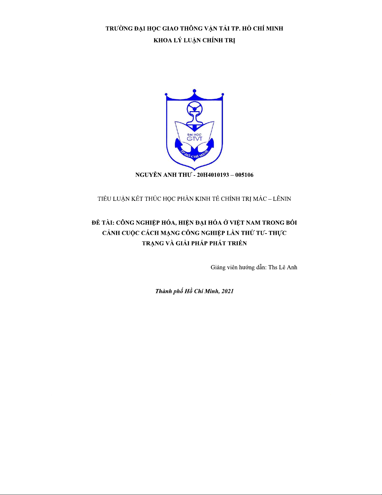 Công Nghiệp Hóa và Hiện Đại Hóa ở VN trong Cuộc Cách Mạng 4.0 - STT: 005106