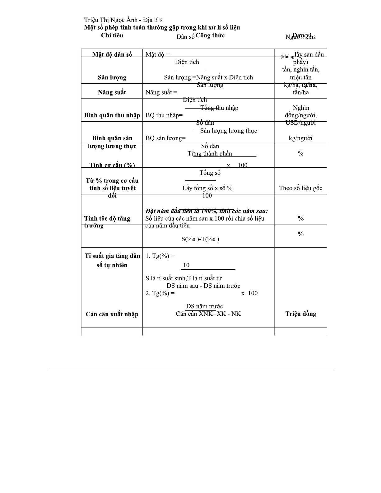 CÔNG THỨC ĐỊA LÍ - Giải Bài Tập Số Liệu Môn Địa Lý 9