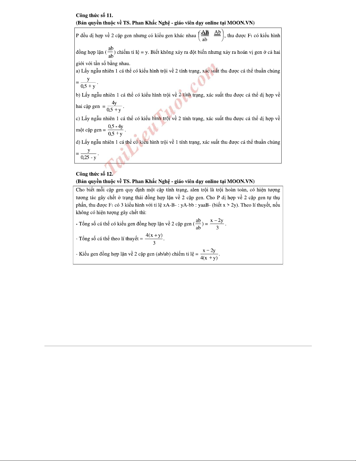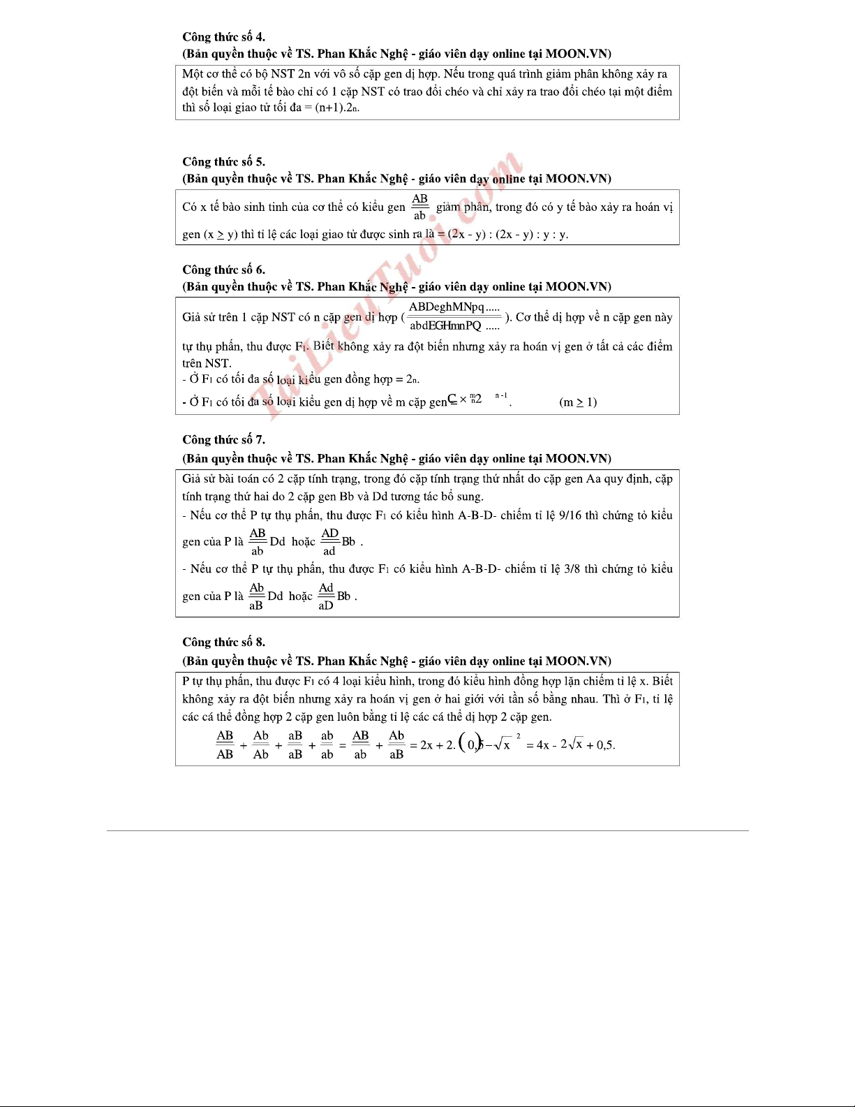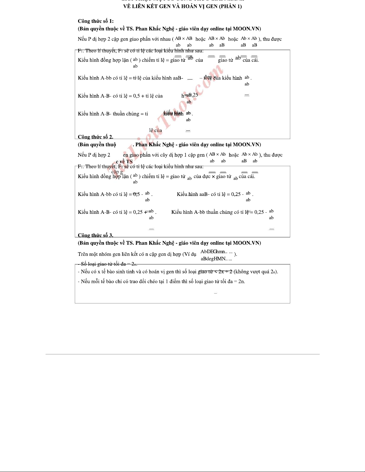 Công thức giải nhanh về liên kết gen và hoán vị gen (Phần 1)