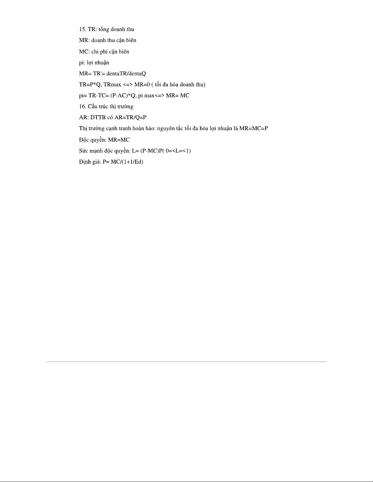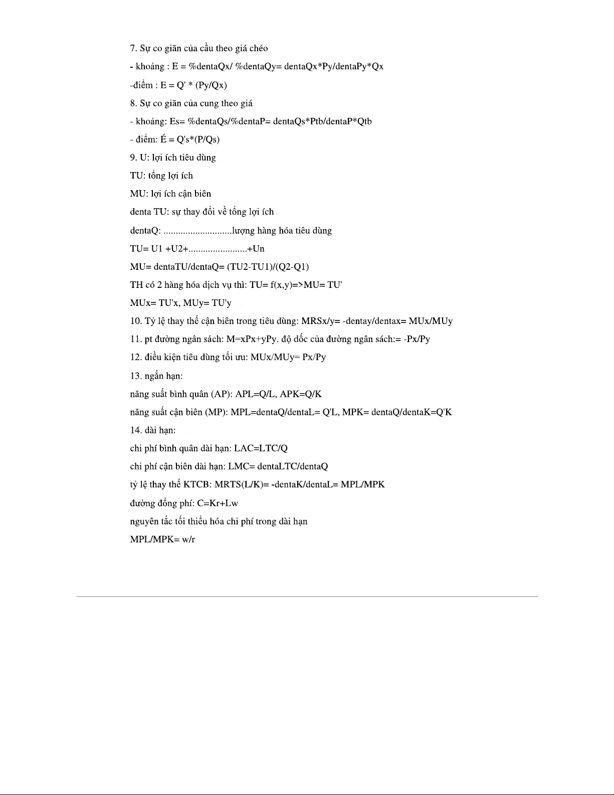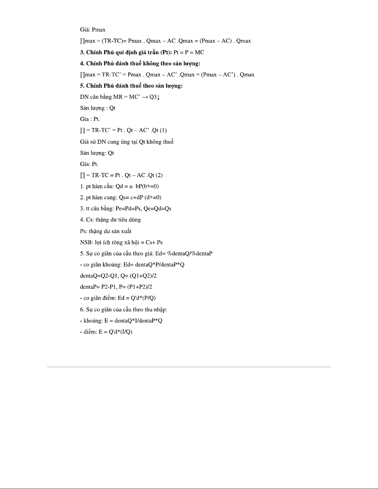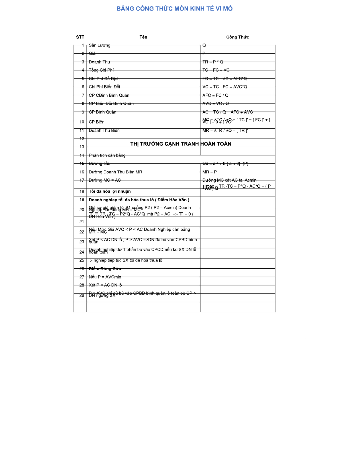 Công Thức Kinh Tế Vi Mô (ECON 101) - Tài Liệu Tổng Hợp