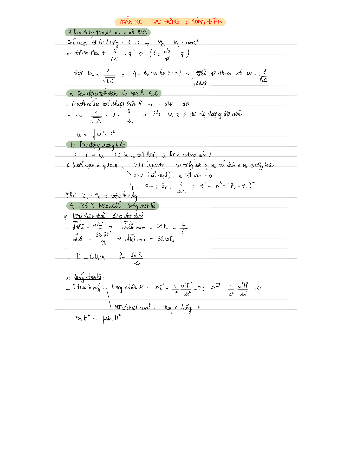 Công thức môn Vật lý đại cương 2 | Học viện Công Nghệ Bưu Chính Viễn Thông