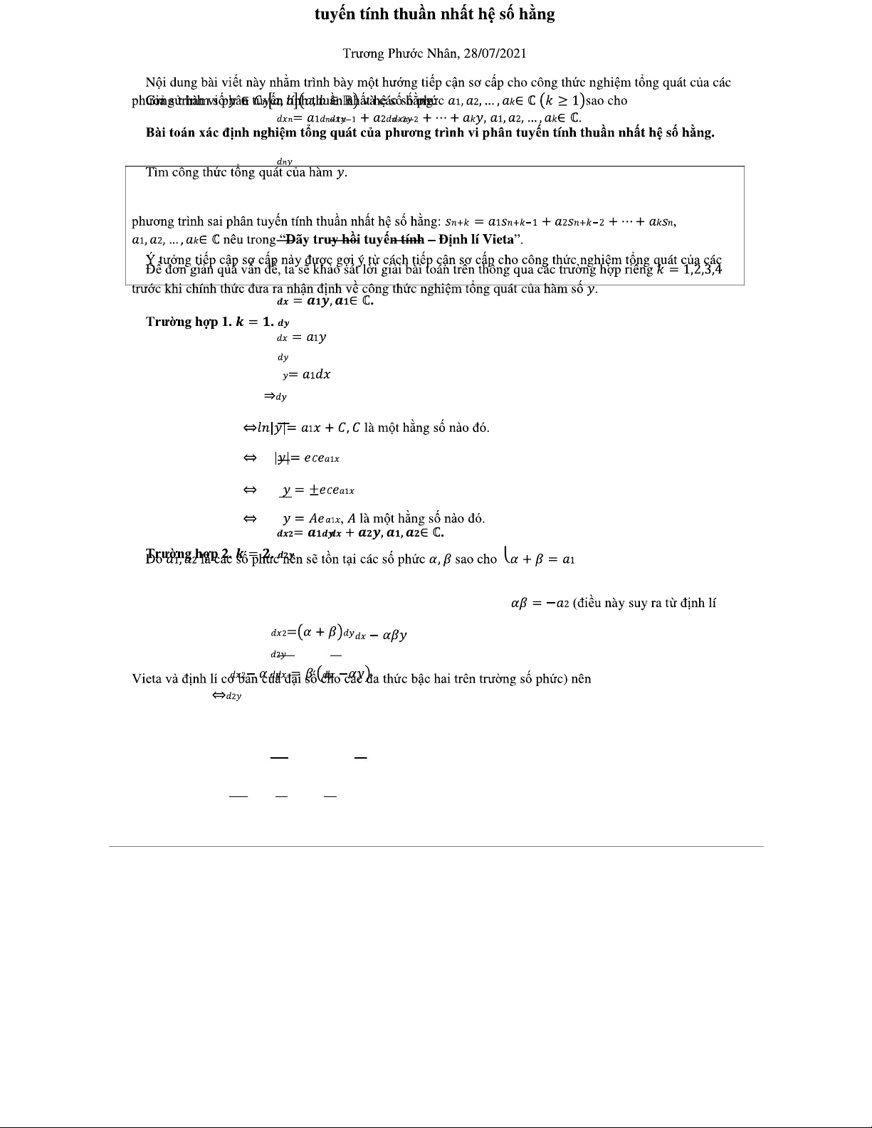 Công thức nghiệm tổng quát của PDC vi phân tuyến tính thuần nhất