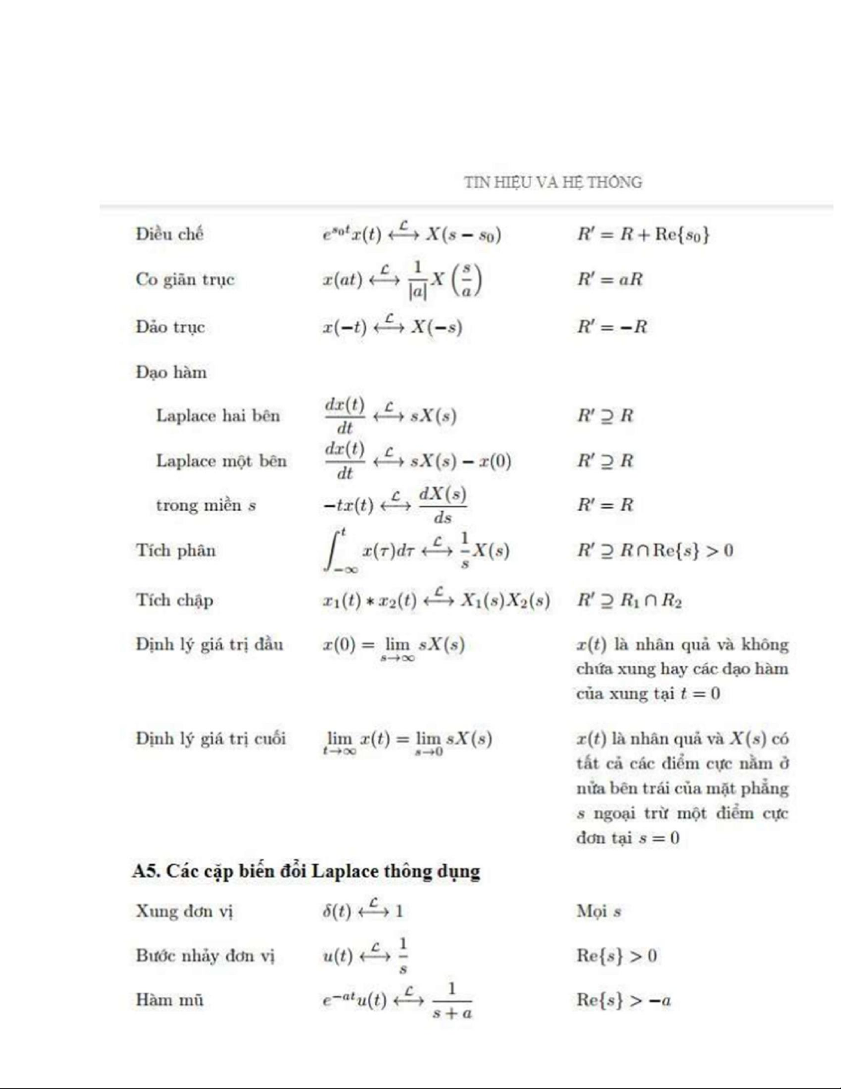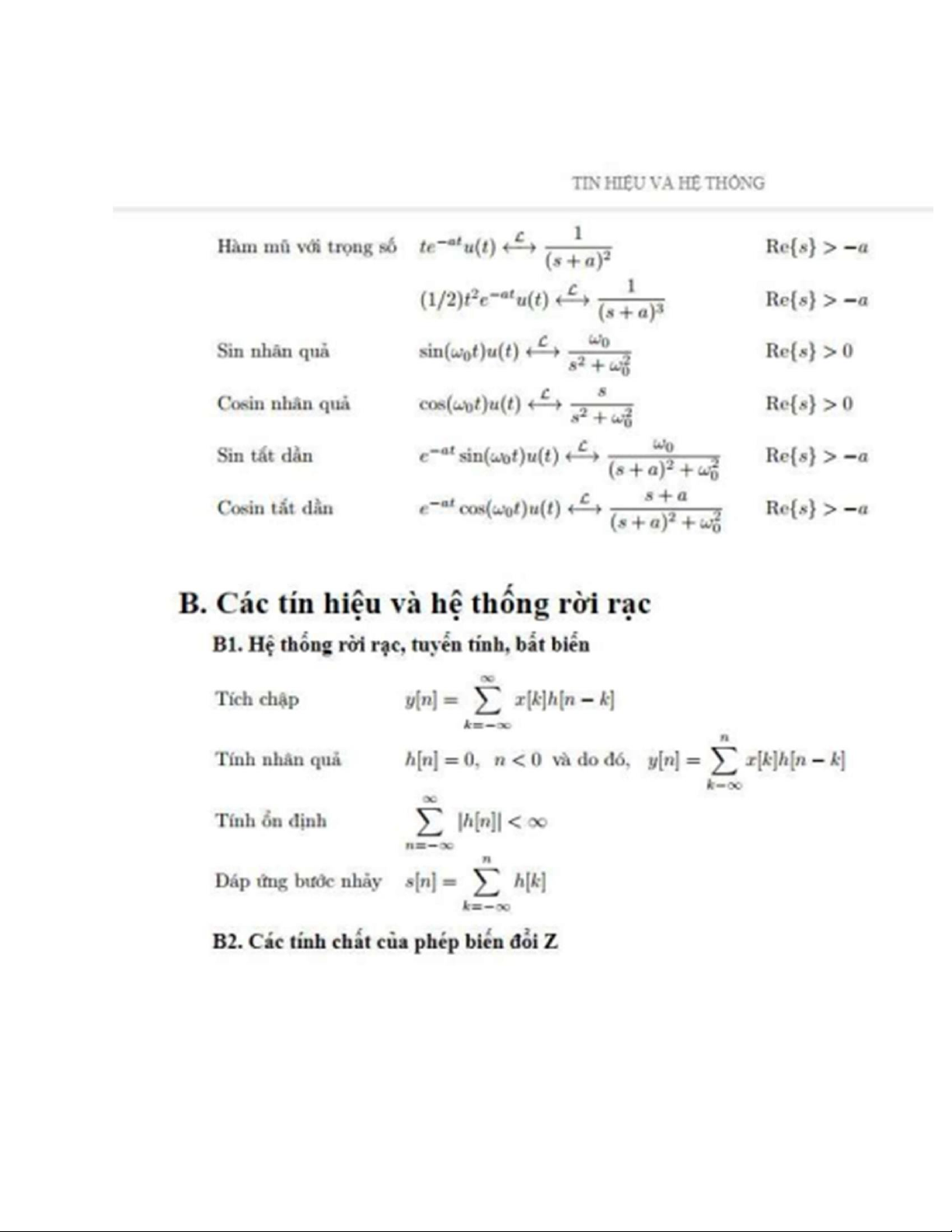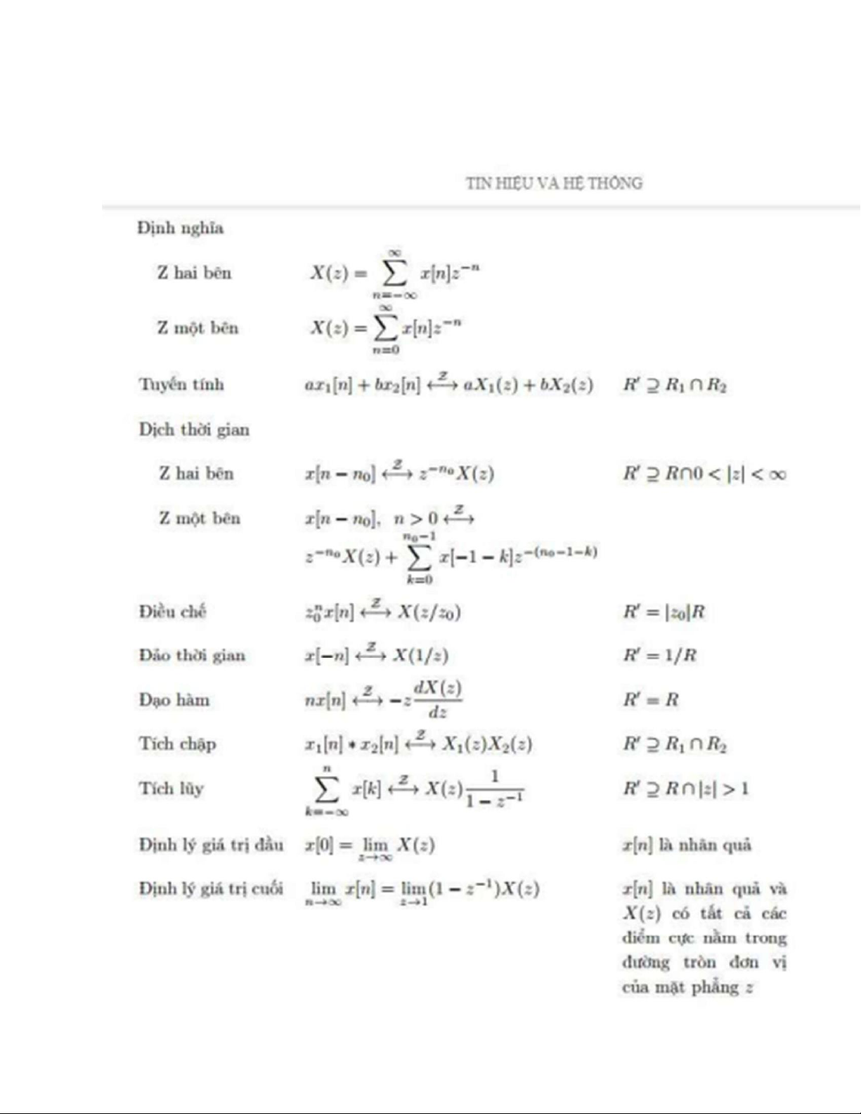 Tài liệu công thức môn Tín hiệu hệ thống | Trường Đại học Bách Khoa Hà Nội