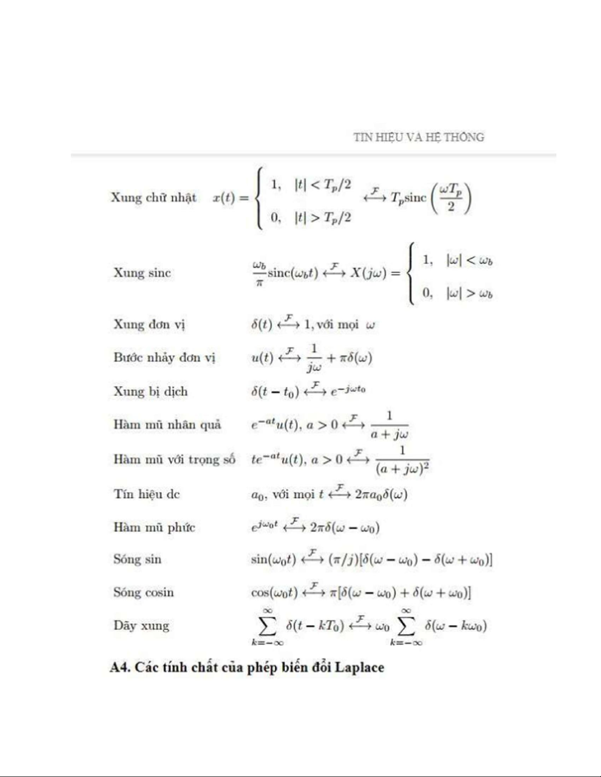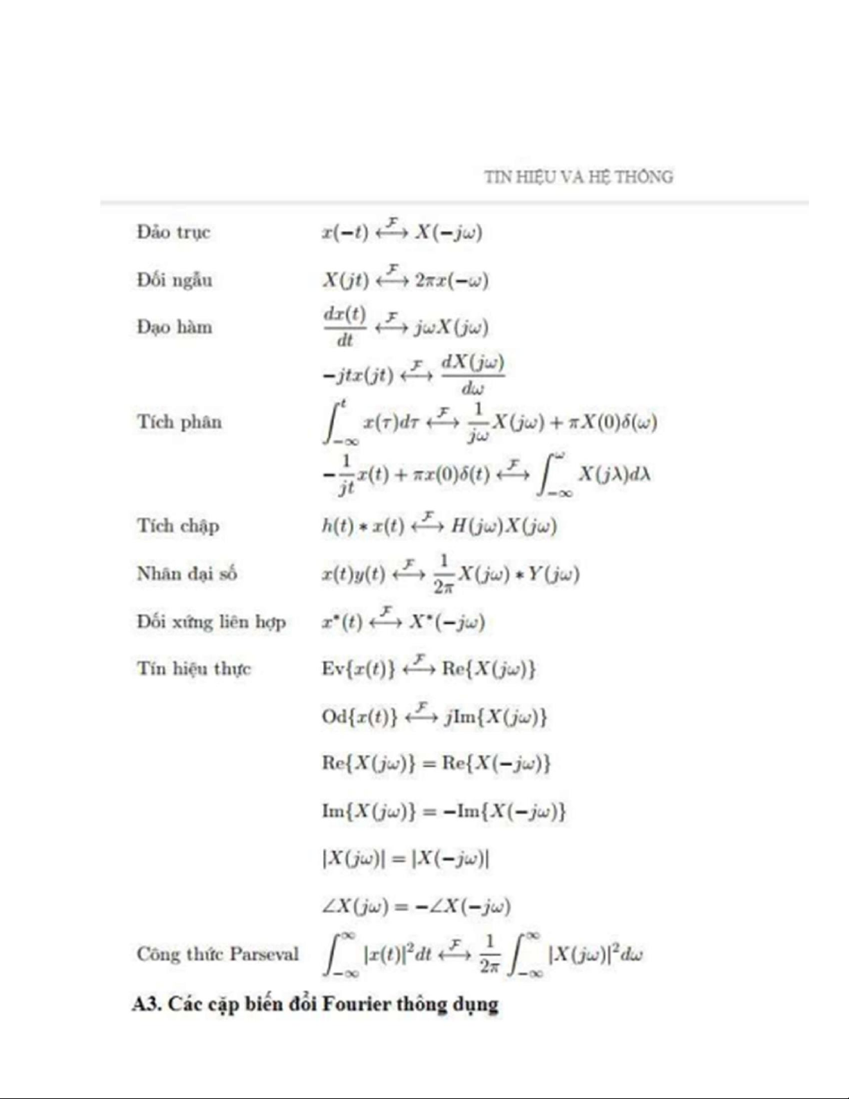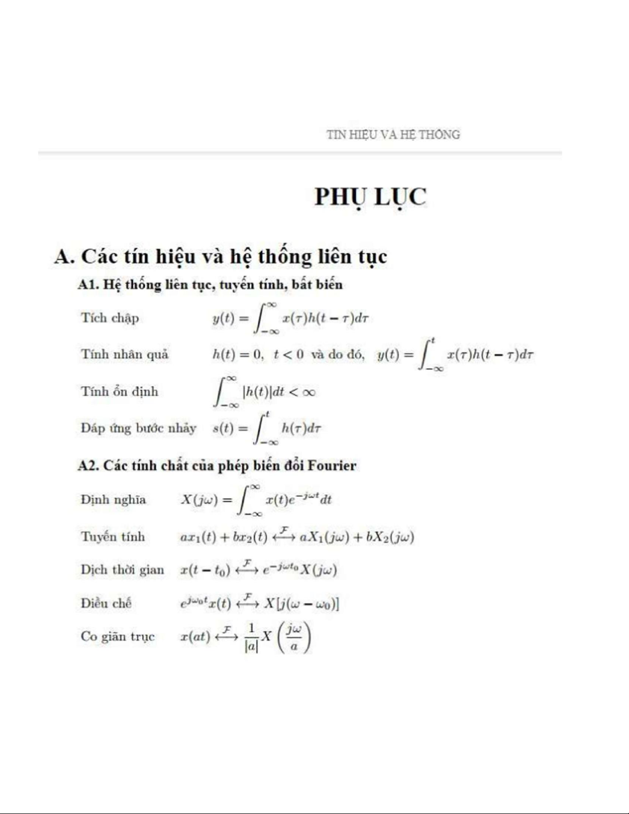 Tài liệu công thức môn Tín hiệu hệ thống | Trường Đại học Bách Khoa Hà Nội