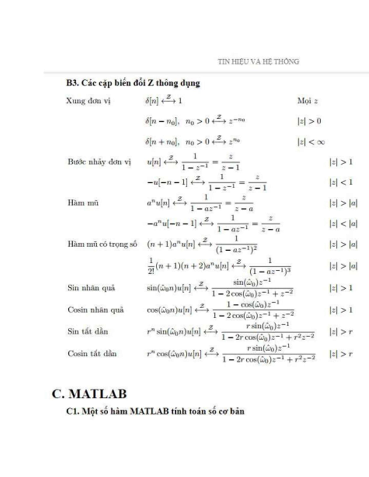 Công thức nhanh và tính toán MATLAB môn Tín hiệu hệ thống | Trường Đại học Bách Khoa Hà Nội