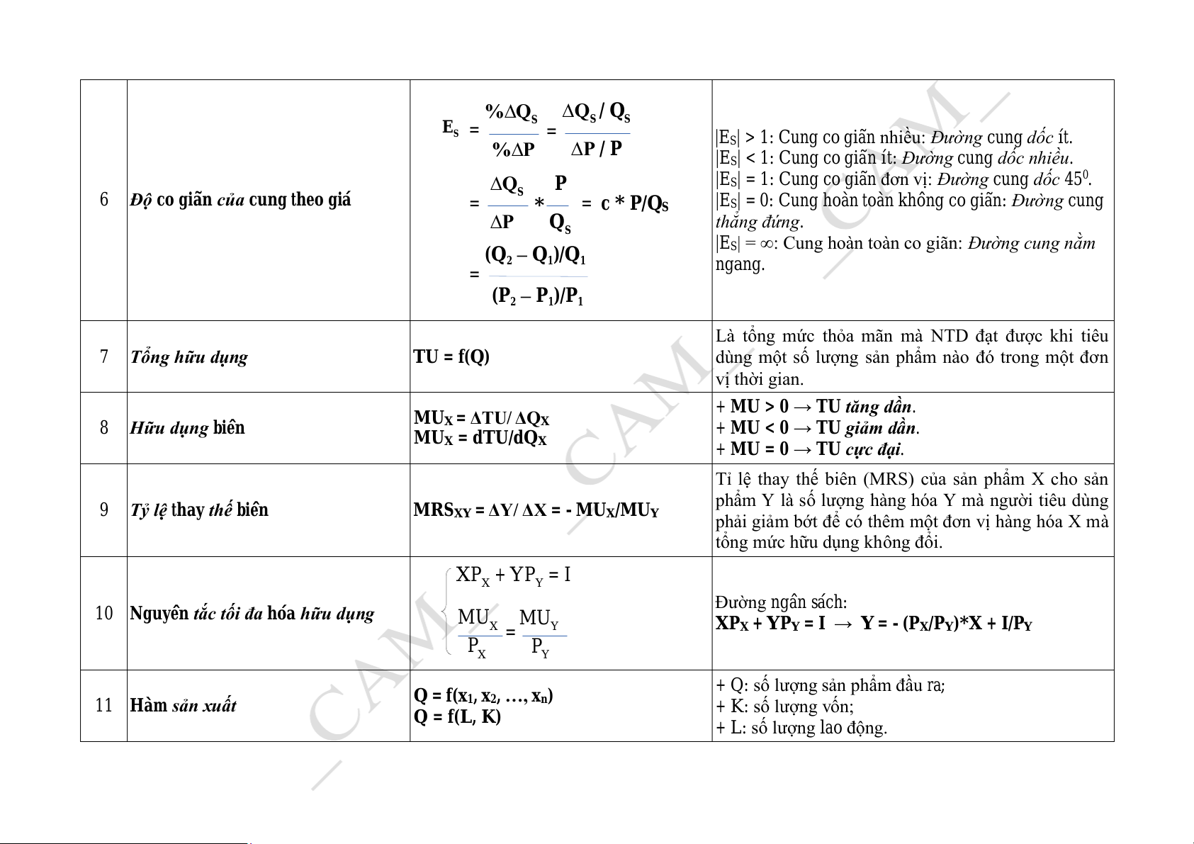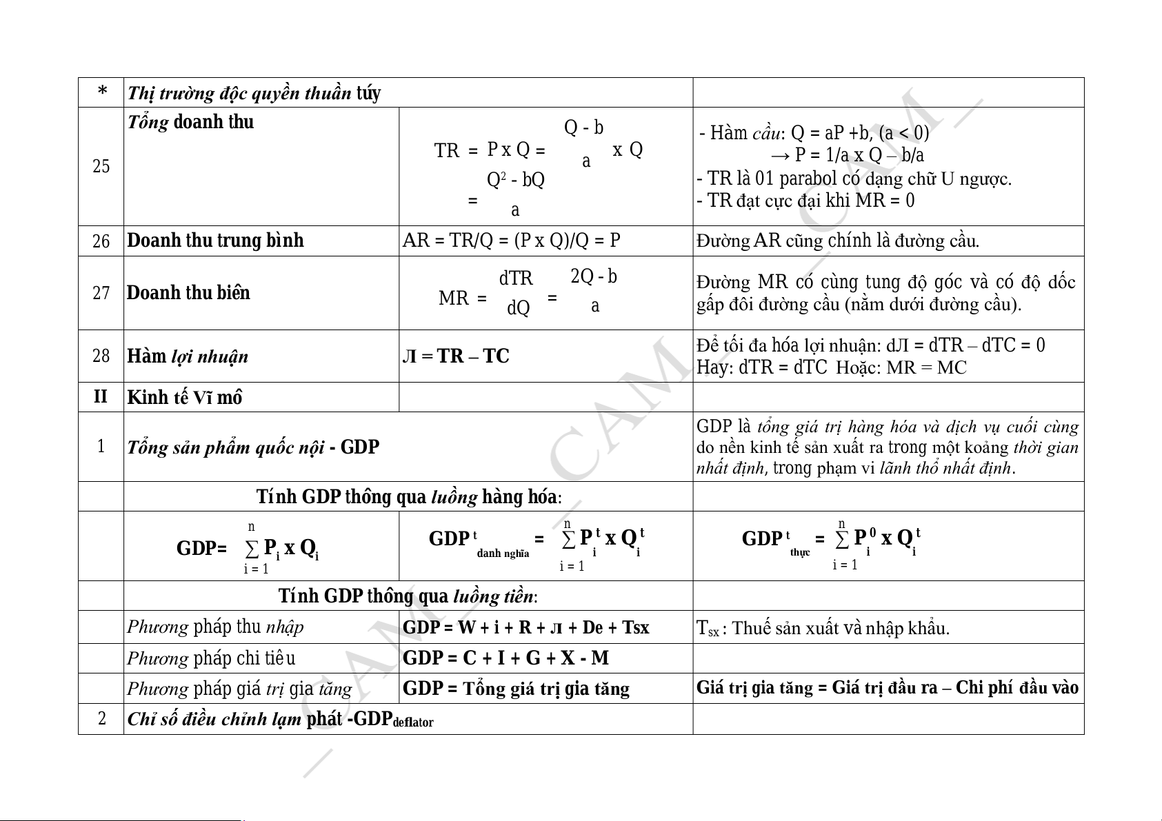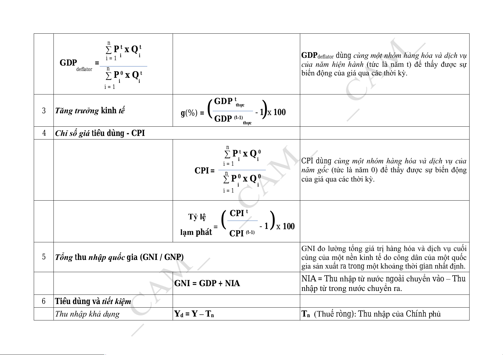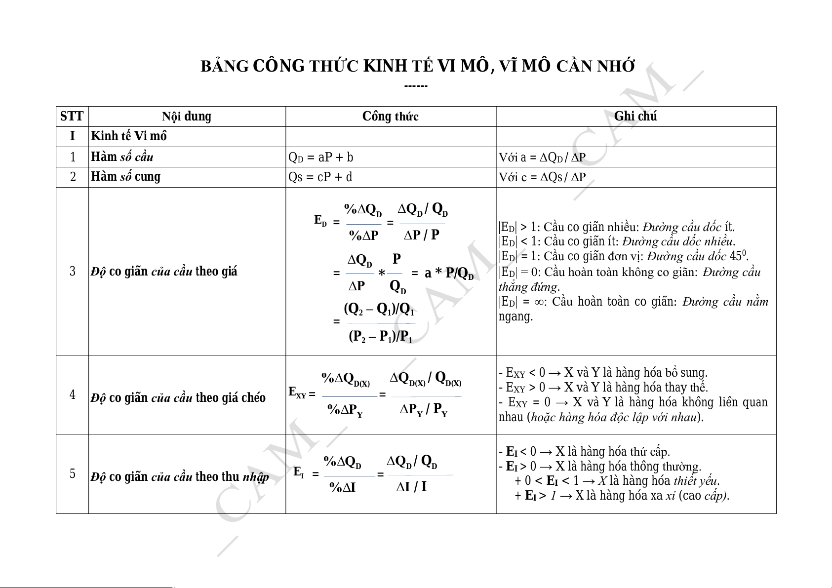 BẢNG CÔNG THỨC KINH TẾ VI MÔ, VĨ MÔ CẦN NHỚ STT Nội dung Công thức Ghi chú