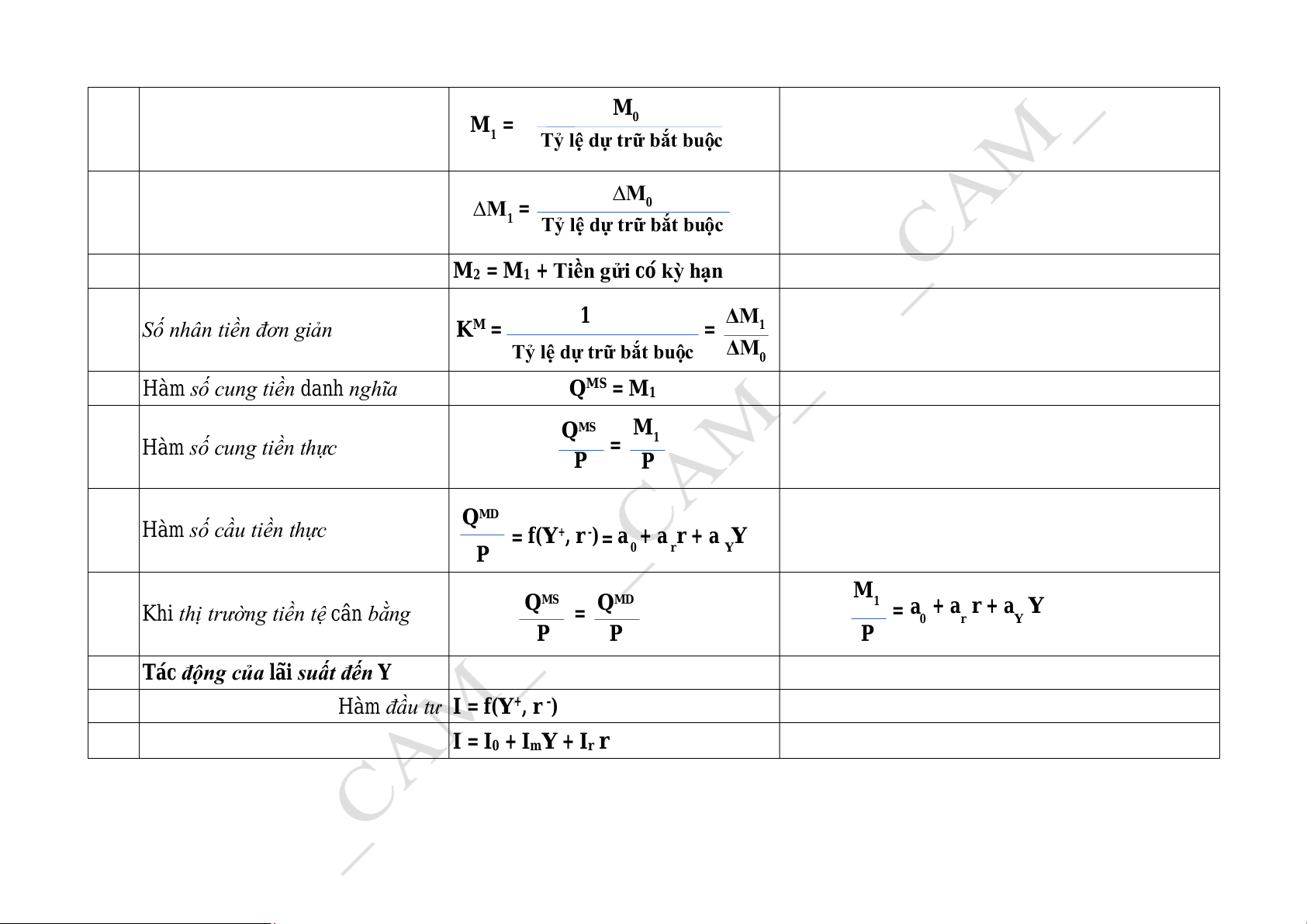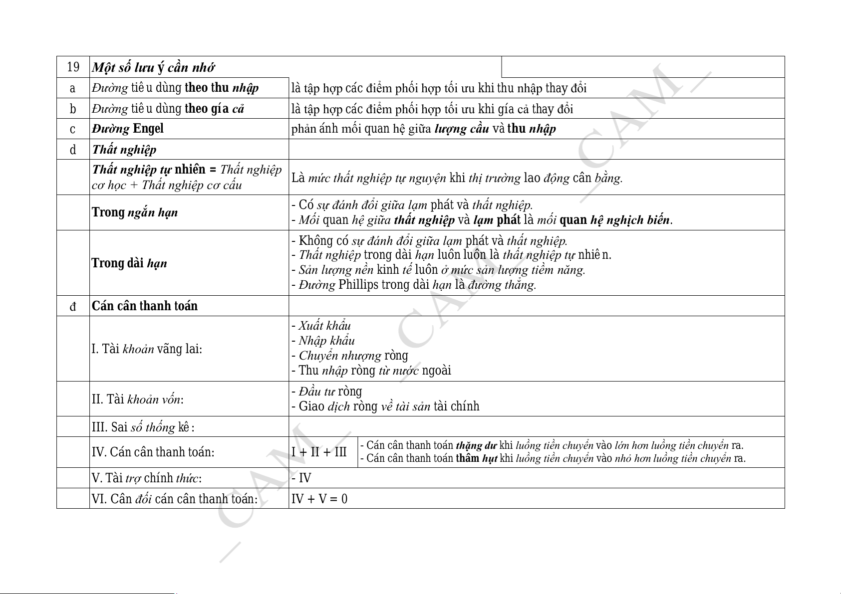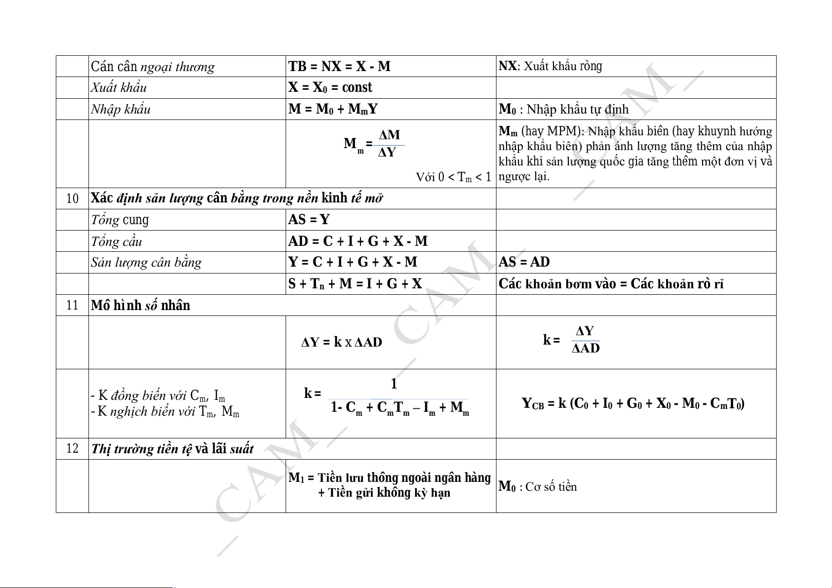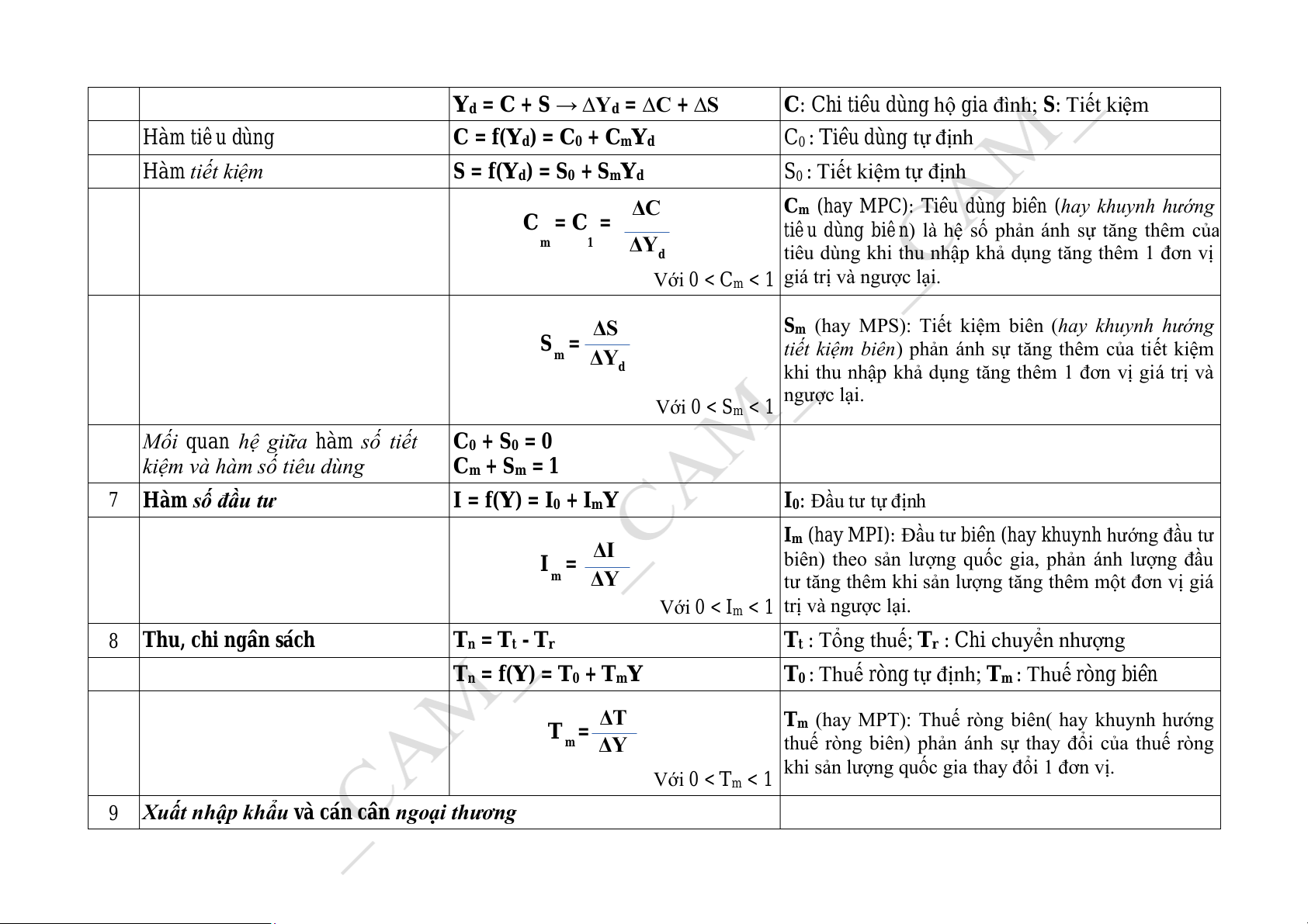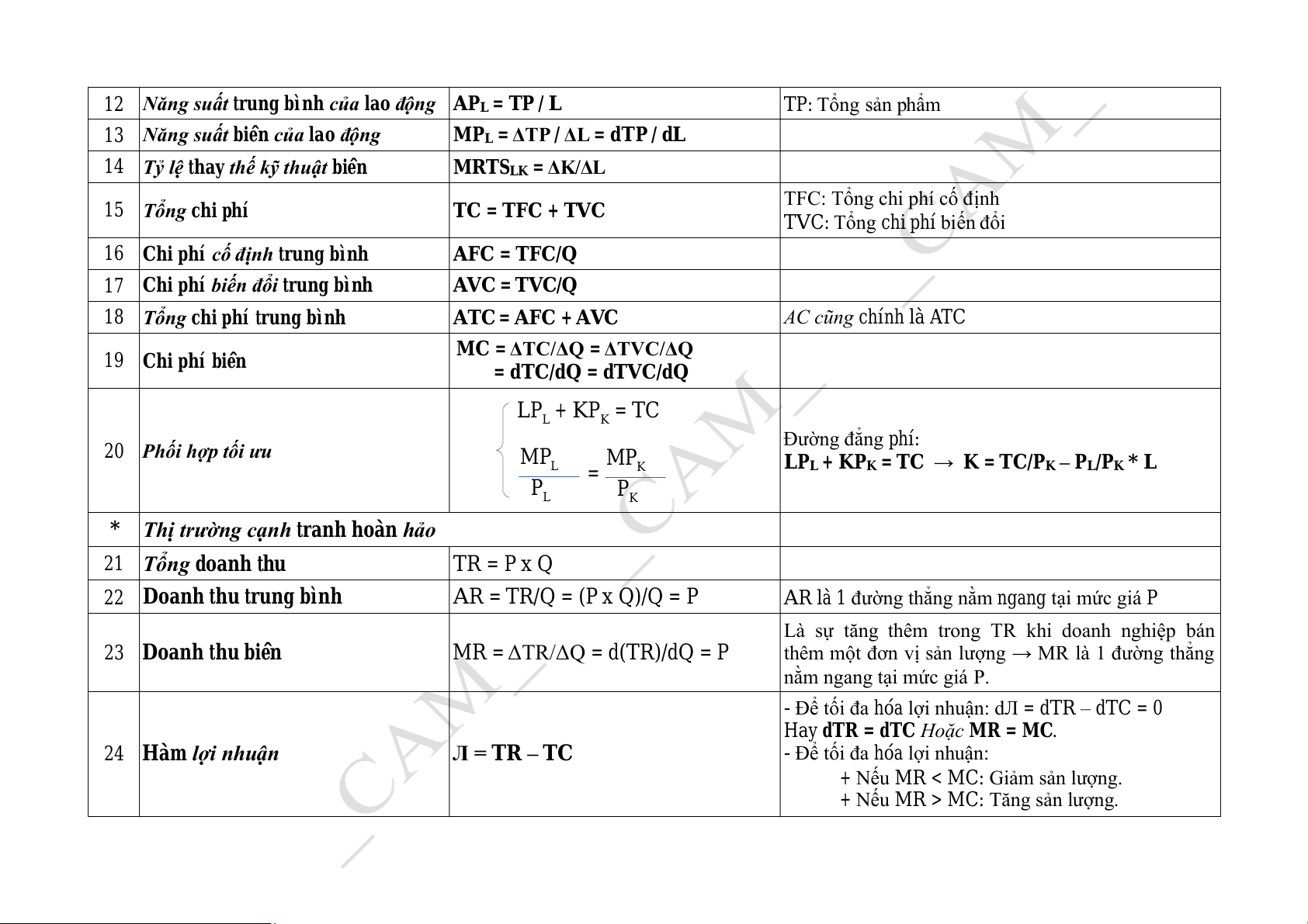 BẢNG CÔNG THỨC KINH TẾ VI MÔ, VĨ MÔ CẦN NHỚ STT Nội dung Công thức Ghi chú