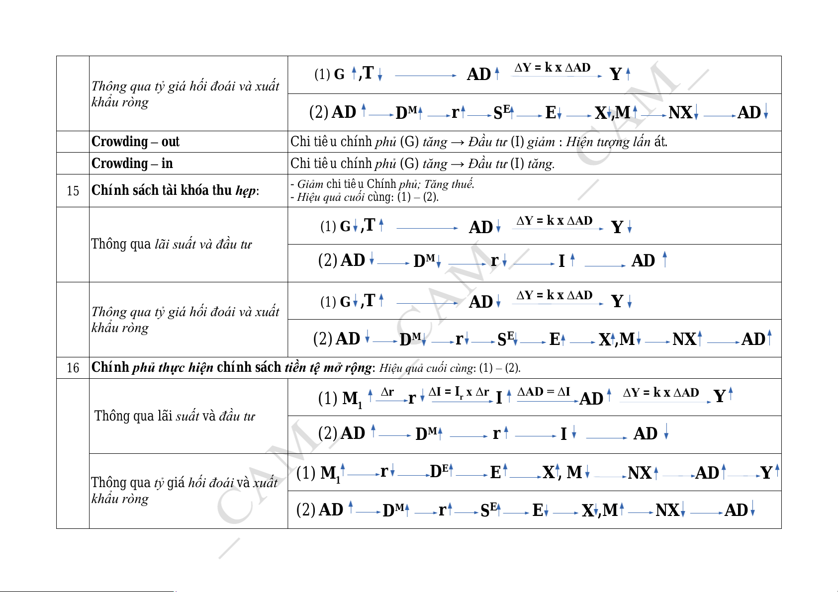 I ∆AD AD ∆Y = k x ∆AD Y Thông qua lãi 1 suất và đầu tư (2) AD DM r I AD r DE Thông qua (1) M E X , M NX AD Y