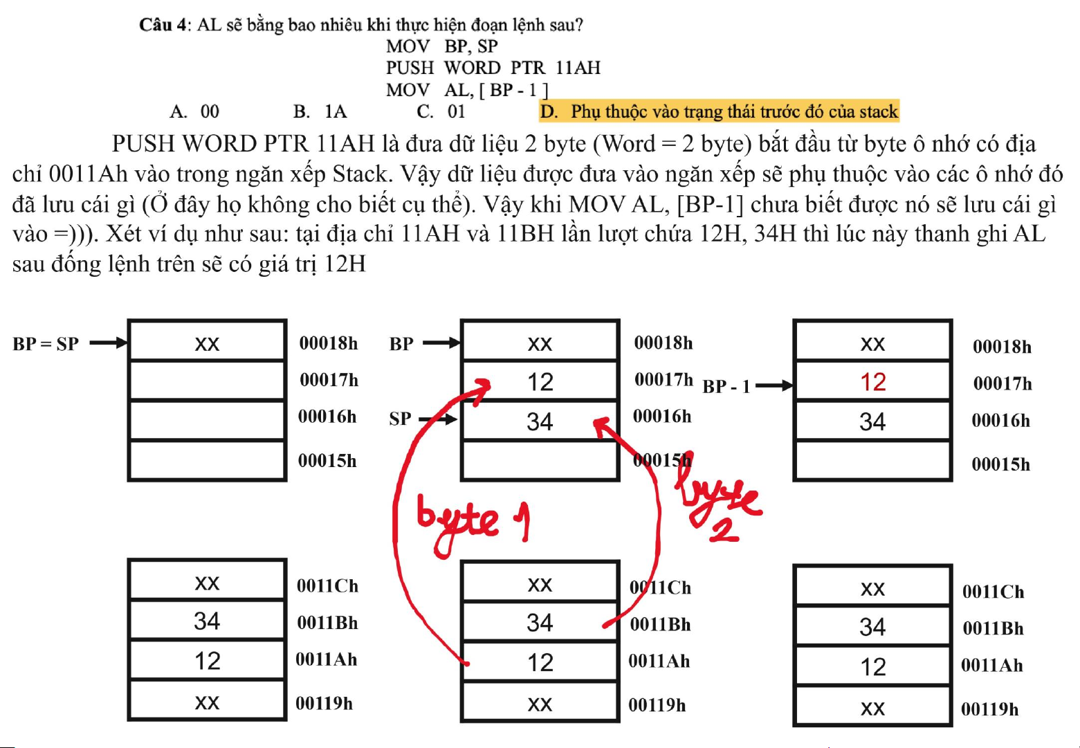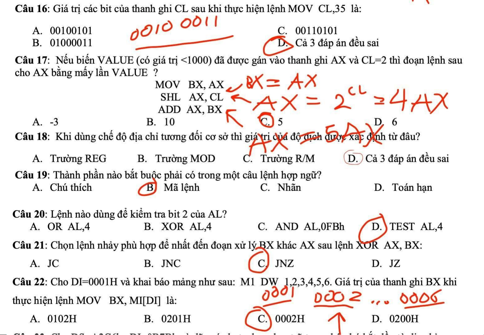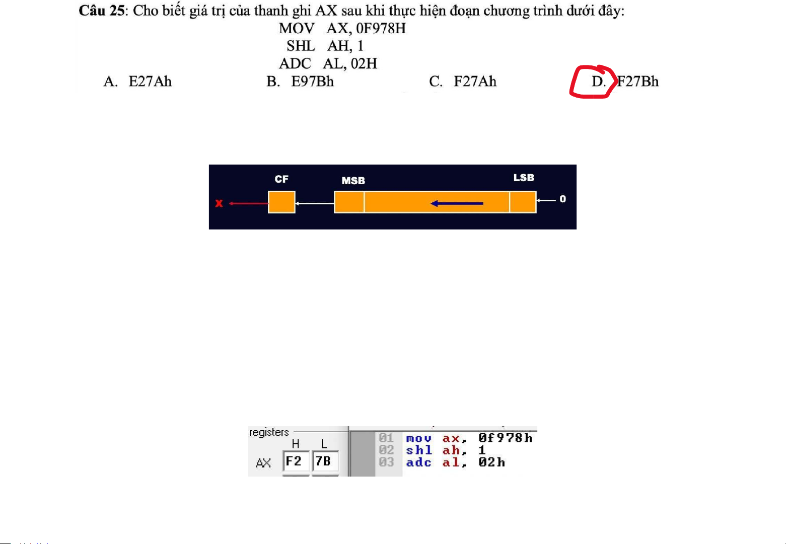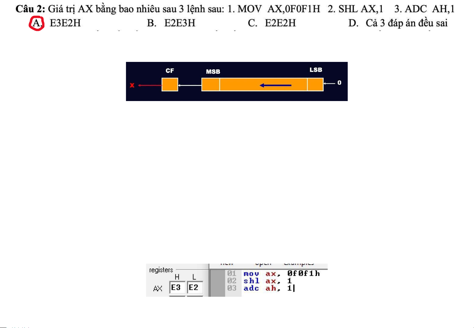 => SHL AX, CL sẽ làm AX gấp 2^CL lần AX lúc đầu, với CL = 2 => sau lệnh trên, AX = 4 Q