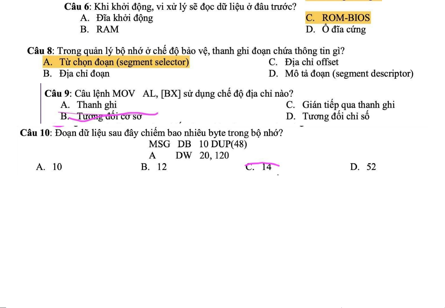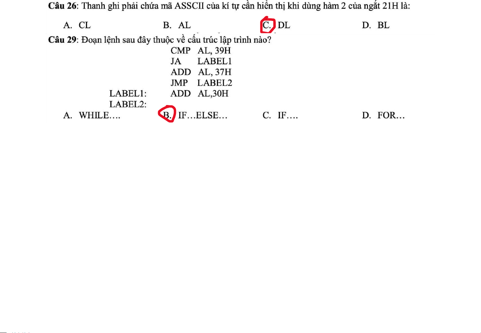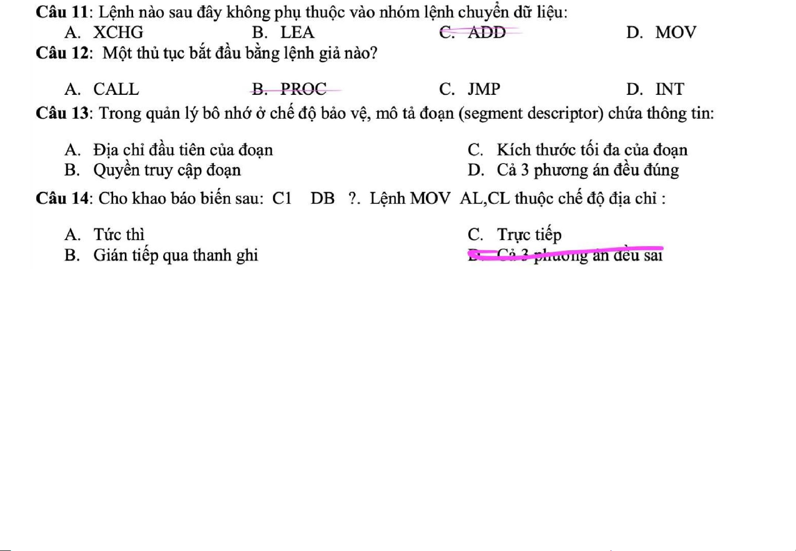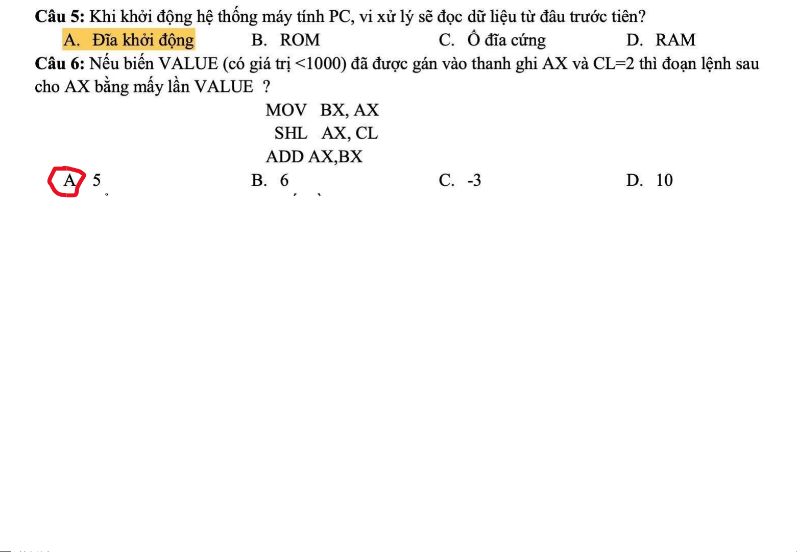 => SHL AX, CL sẽ làm AX gấp 2^CL lần AX lúc đầu, với CL = 2 => sau lệnh trên, AX = 4 Q