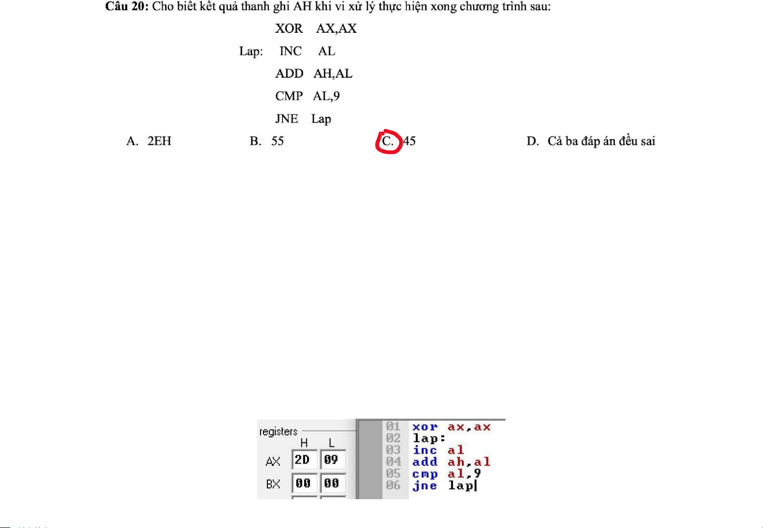 sau các lệnh trên, AX đã gấp 5 lần AX lúc đầu (VALUE ) lOMoAR cPSD| 61554479 © DHBK 2005 lOMoAR cPSD| 61554479 © DHBK 2005 XOR AX, AX đưa AX về 0
