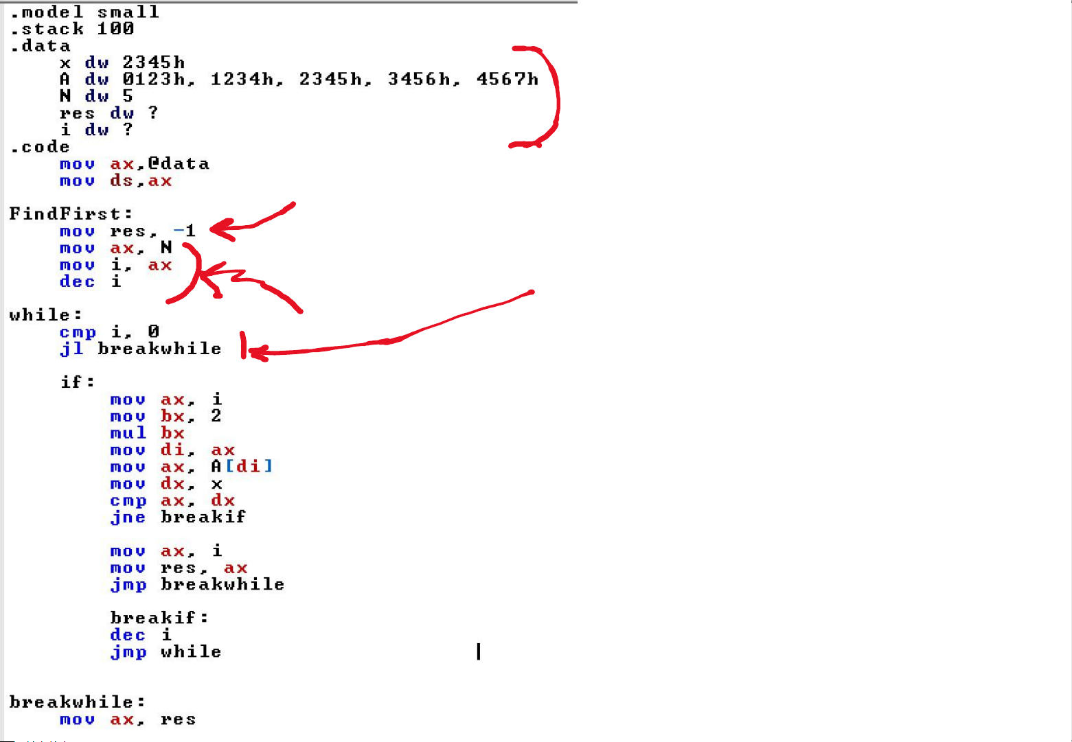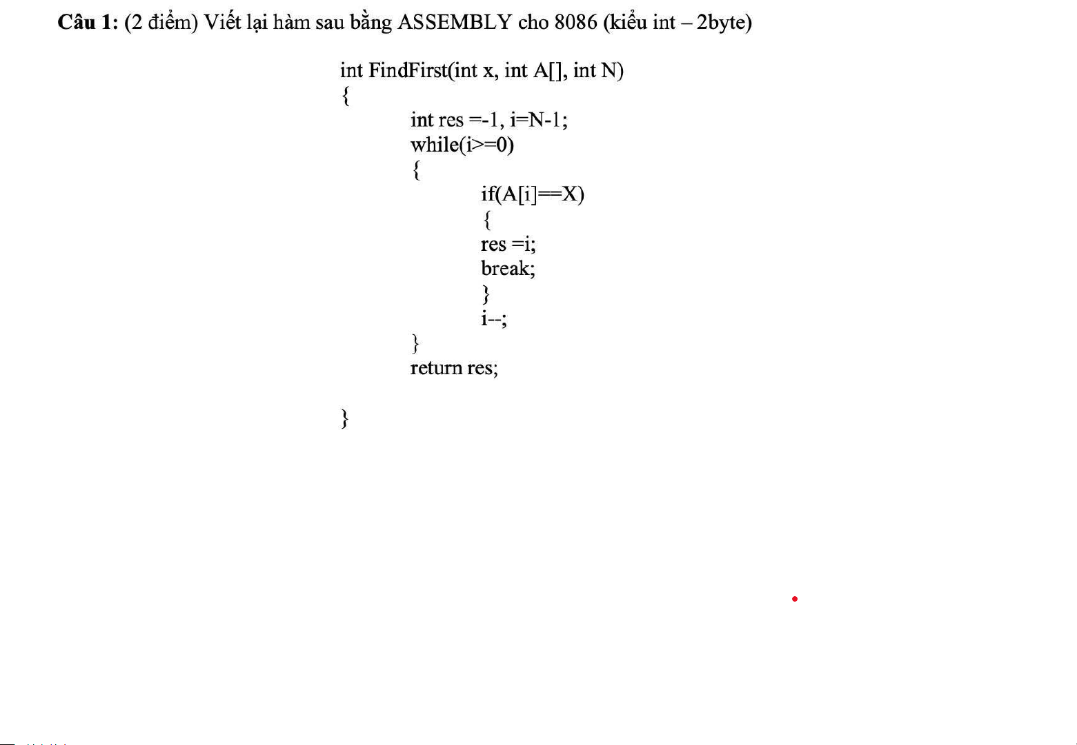 Khai báo các biến x, N, res, i kiểu int (2 byte = DW trong asm)