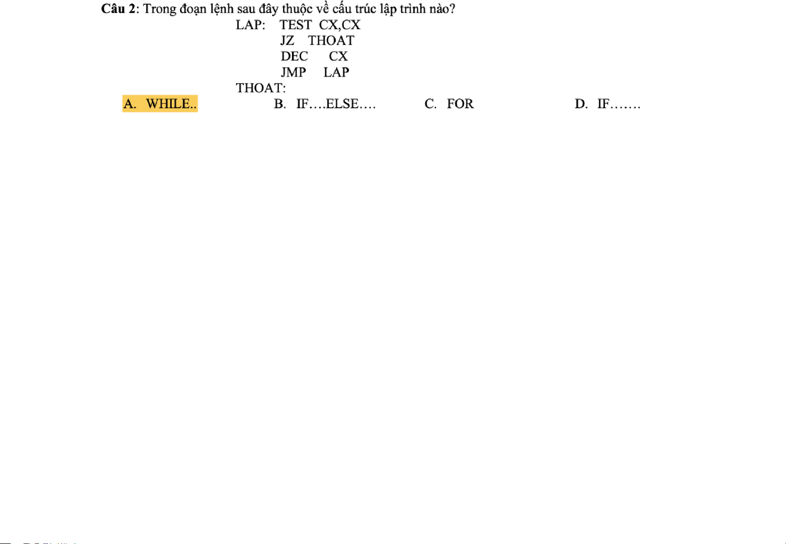 Tóm lại: Kiểm tra CX xem bằng 0 chưa, nếu chưa thì -1 rồi cứ thế đến bao giờ bằng 0 thì thoát vòng lặp => While (CX != 0) CX-=CX; lOMoAR cPSD| 61554479 © DHBK 2005