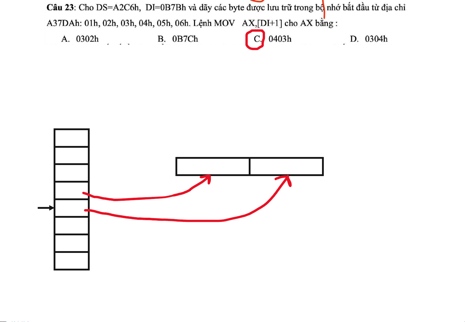 DS:DI => địa chỉ DS*01H+DI = A2C6h*01h+0B7Bh = A37DBh