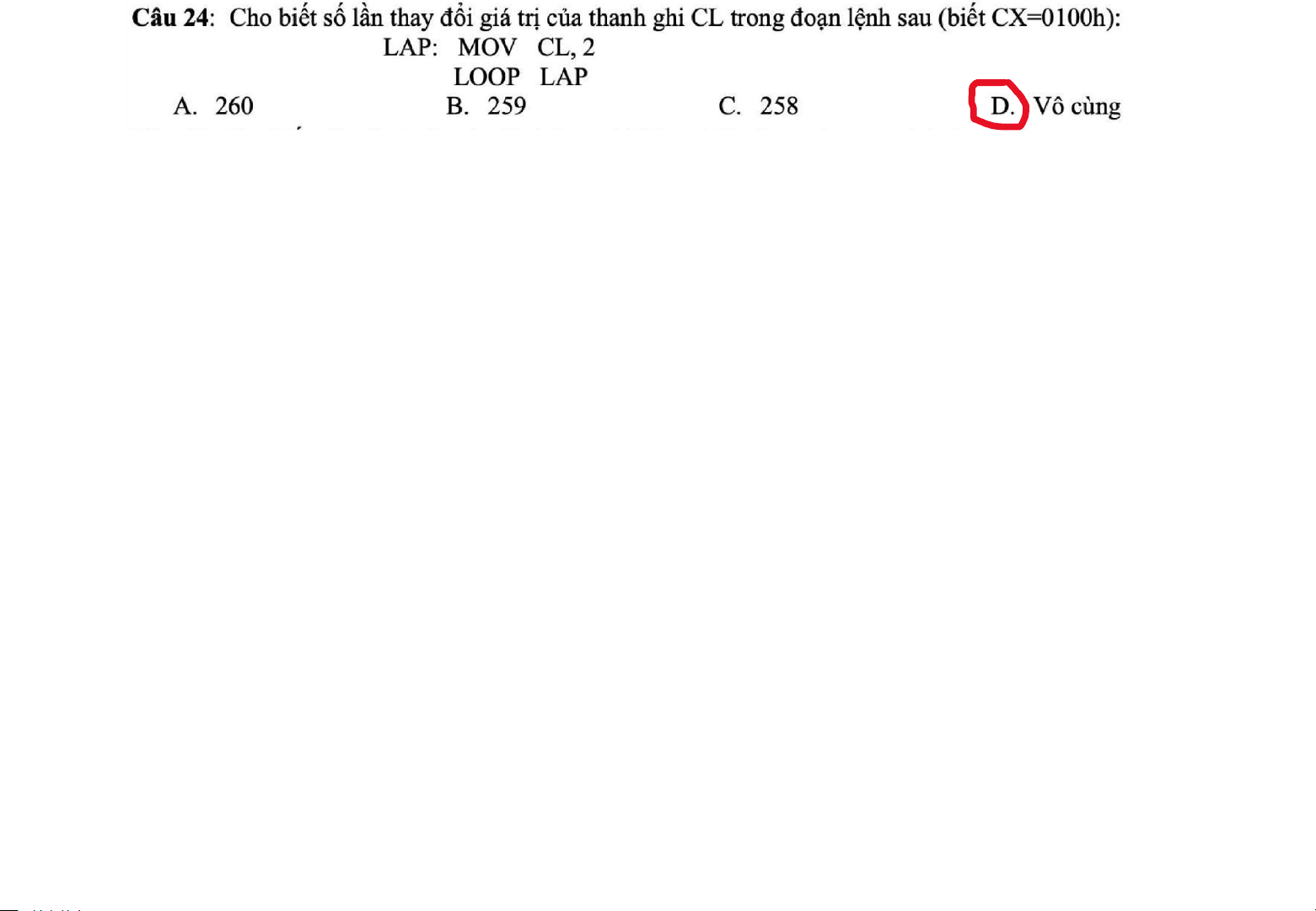 Nhưng trong nhãn LAP, luôn đưa CL thành 2 trước khi LOOP nên sẽ không bao giờ thoả mãn