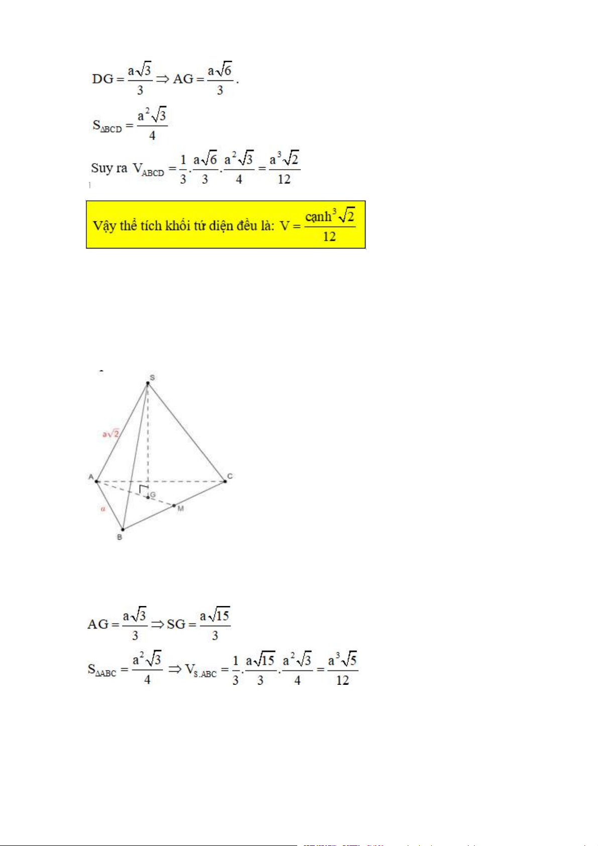 Bài toán: Cho tứ diện đều ABCD cạnh a. Tính thể tích tứ diện ABCD Lời giải: