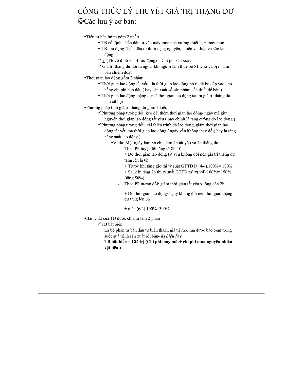 CÔNG THỨC VÀ LÝ THUYẾT VỀ GIÁ TRỊ THẶNG DƯ (KTPM 101)