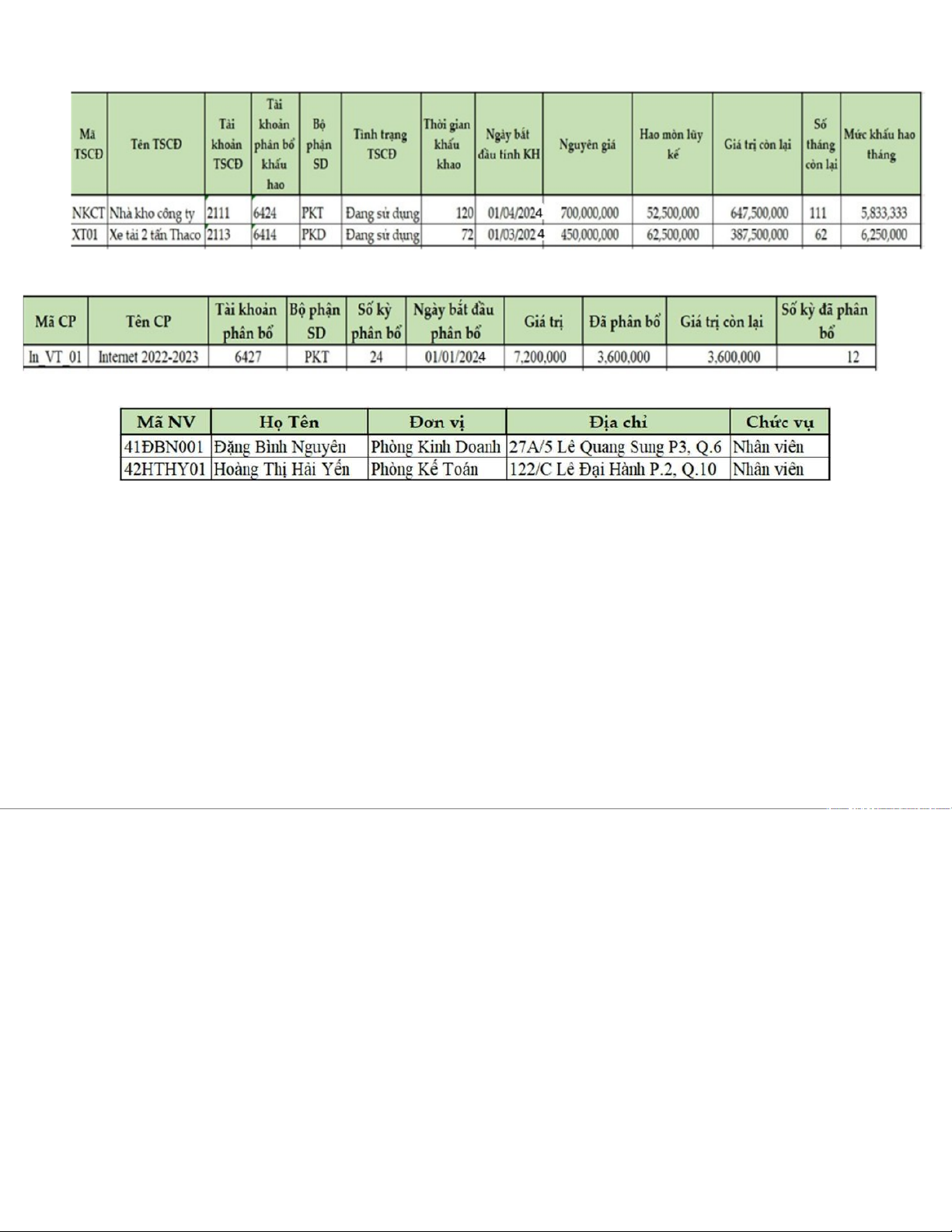4. Thông tin chi phí trả trước 5. Thông tin nhân viên