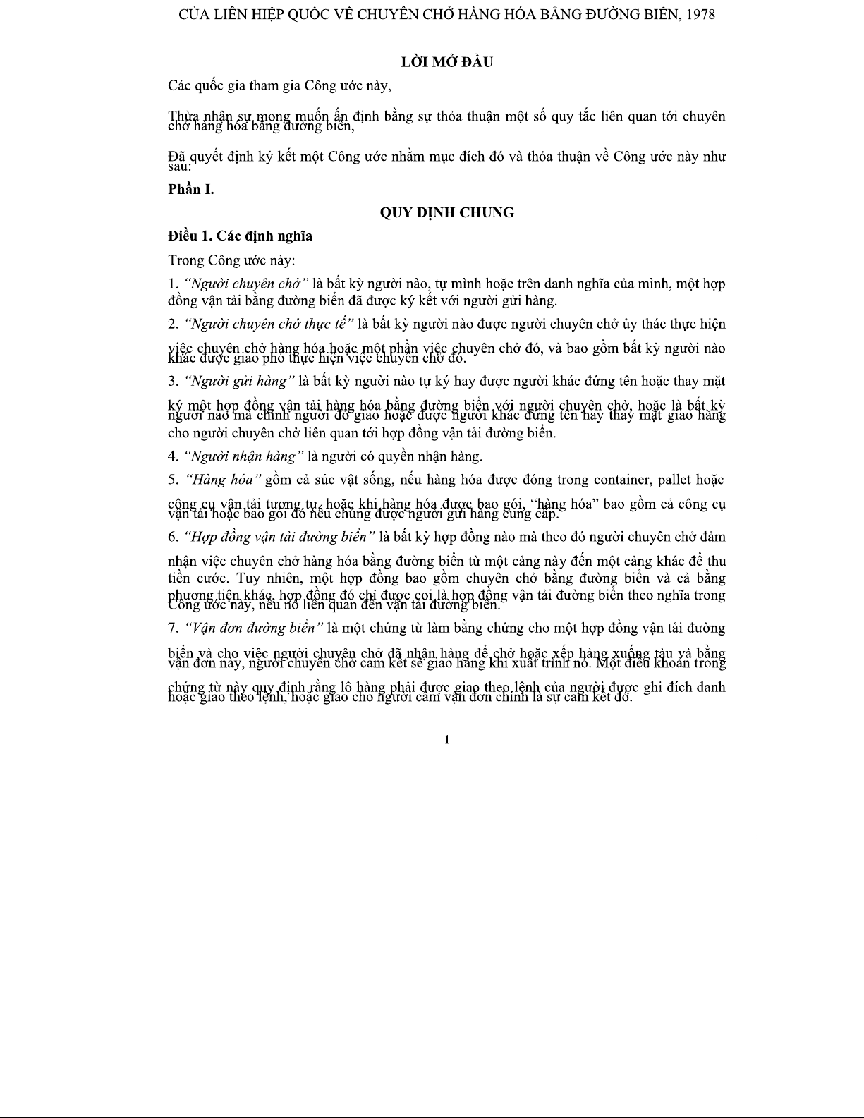 CÔNG ƯỚC Hamburg về Vận Tải Đường Biển 1978 - Tóm tắt và Phân tích