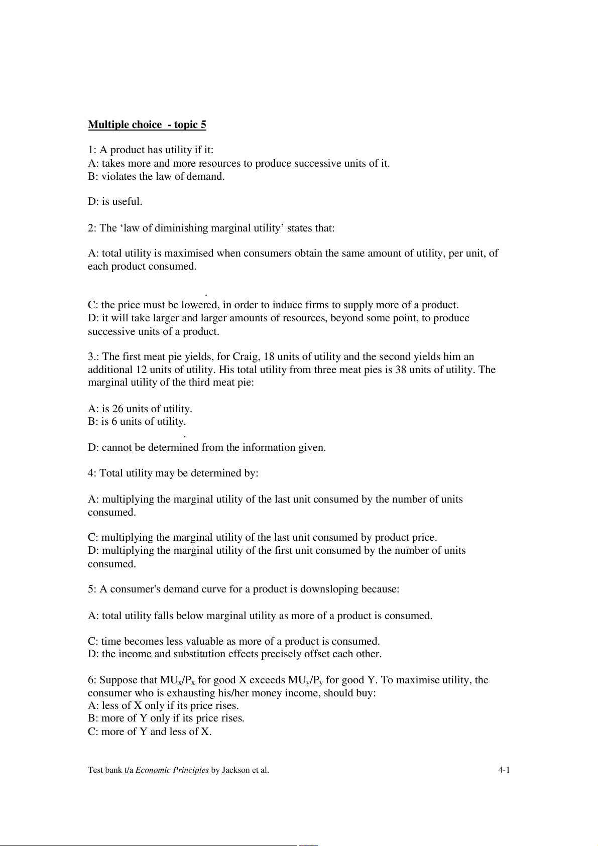 Test bank t/a Economic Principles by Jackson et al. 4-1