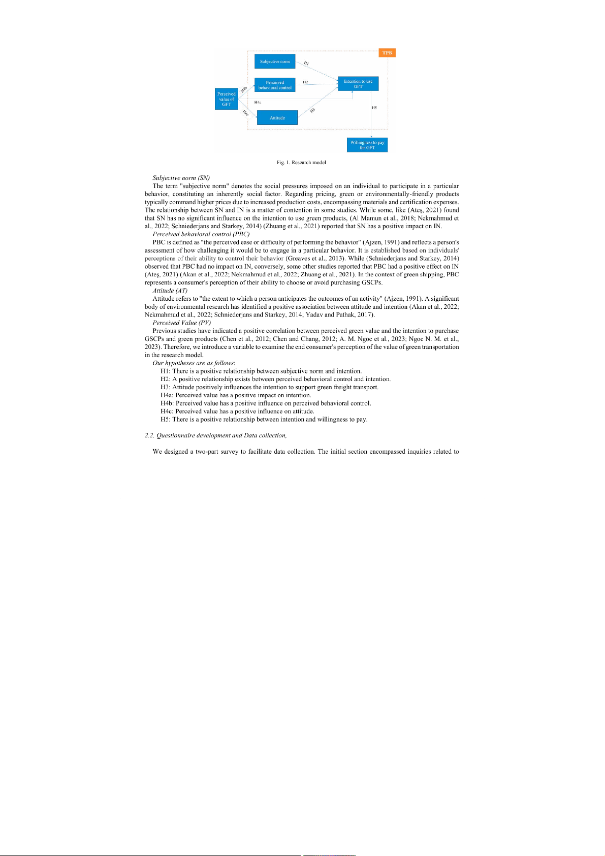 Keywords: Theory of Planned Behavior, Green freight transportation, Willingness to pay a premium, Intention. 1. Introduction