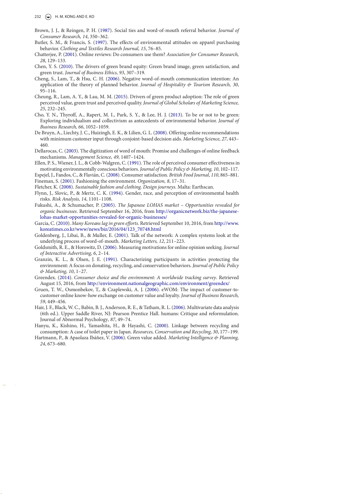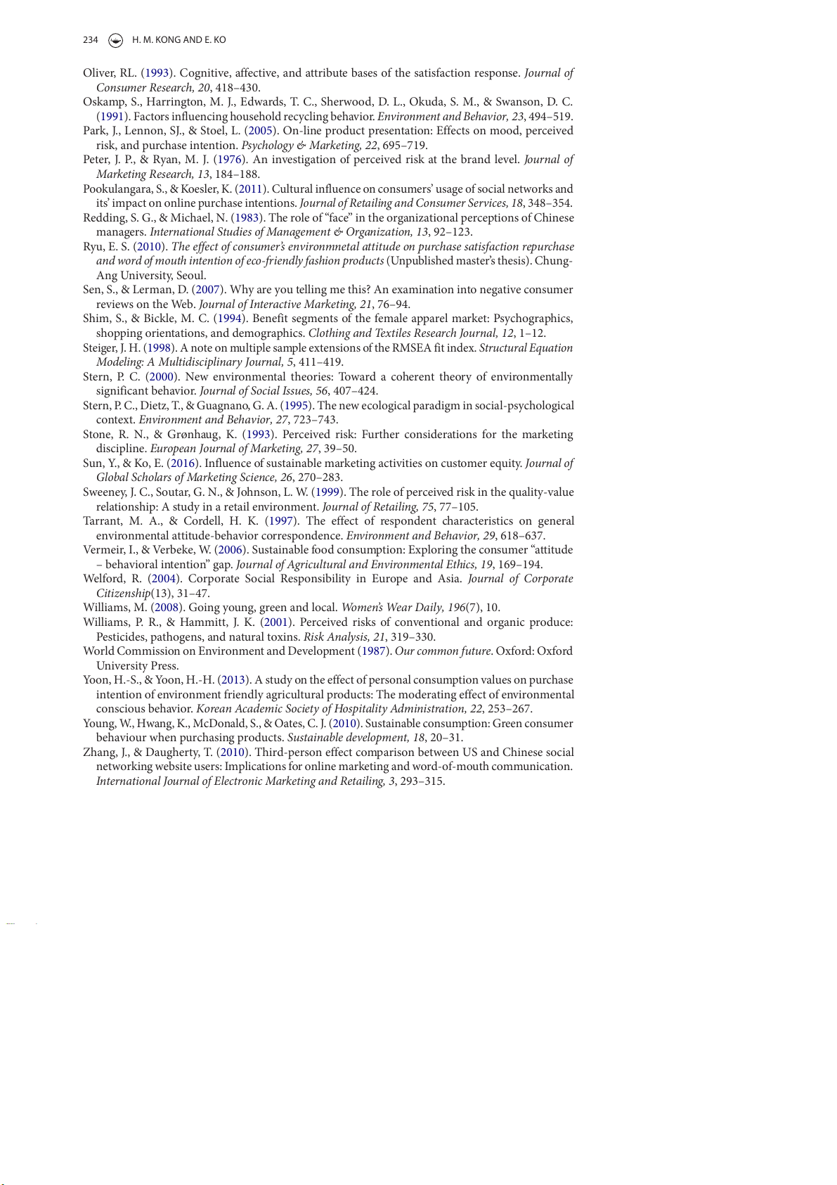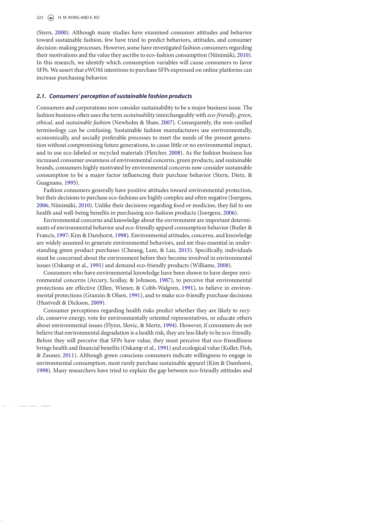 Niinimäki, K. (2010). Eco-clothing, consumer identity and ideology. Sustainable Development, 18, 150–162. 234 H. M. KONG AND E. KO