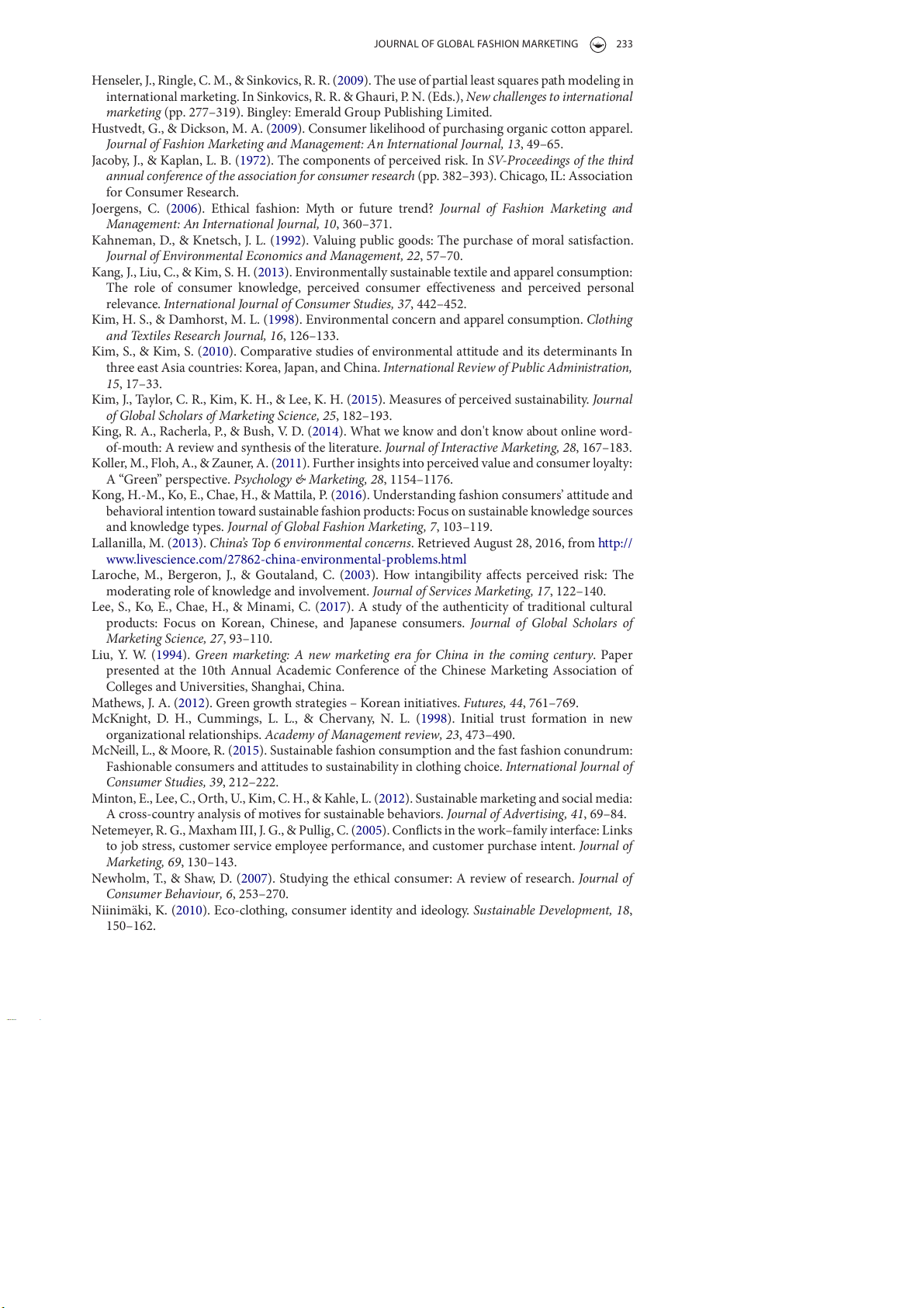 Joergens, C. (2006). Ethical fashion: Myth or future trend? Journal of Fashion Marketing and