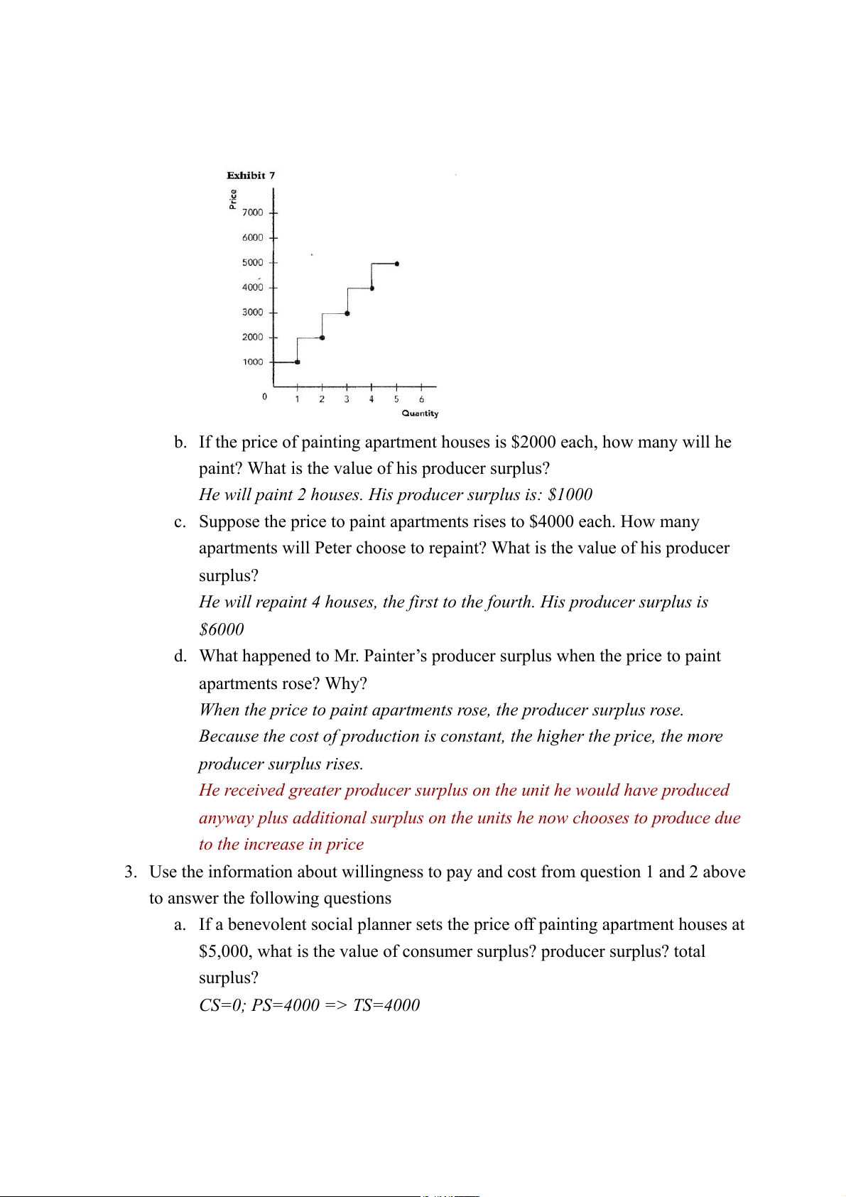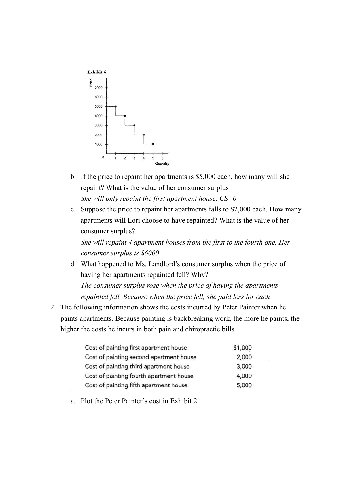 d. What happened to Mr. Painter’s producer surplus when the price to paint apartments rose? Why?