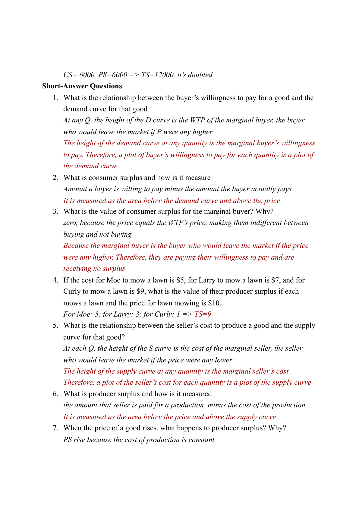 CS= 6000, PS=6000 => TS=12000, it’s doubled Short-Answer Questions