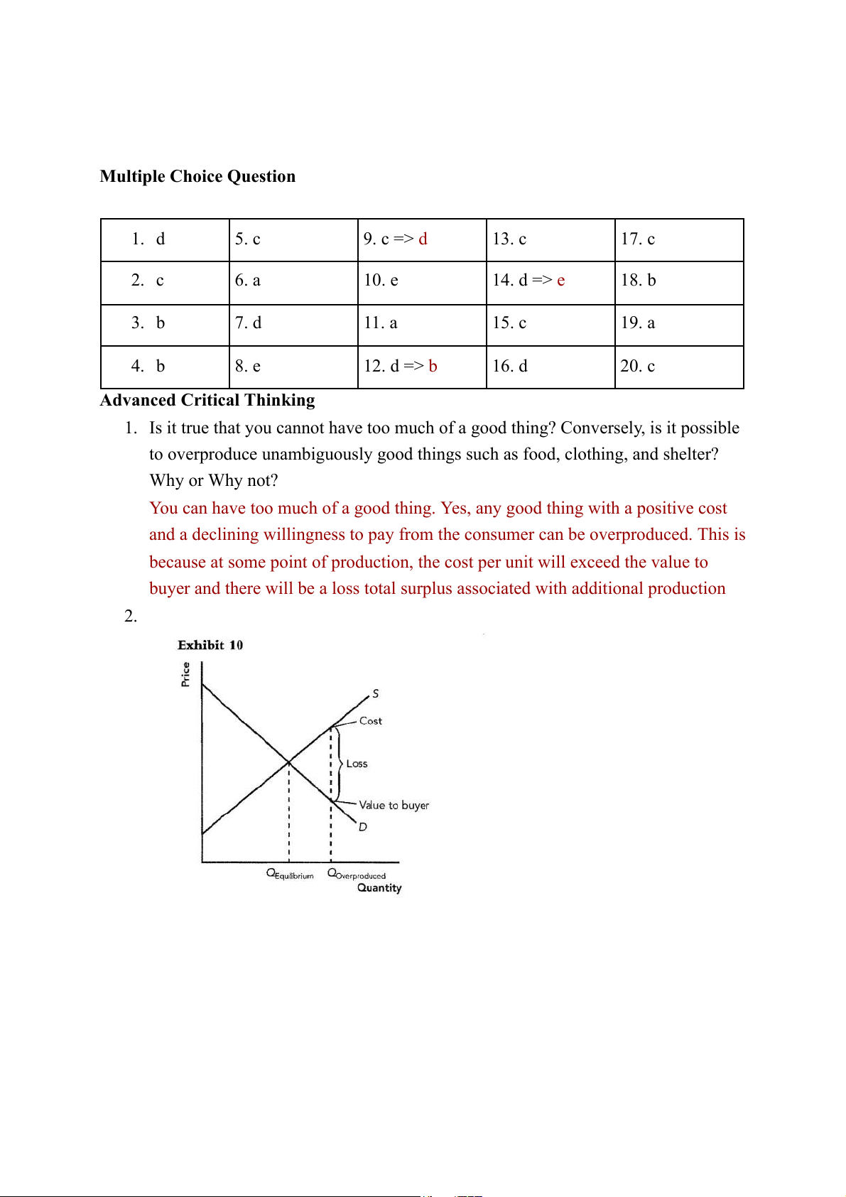 15. F => just only producing if the cost of production is lower or equal the price Multiple Choice Question 1. d 5. c 9. c => d 13. c 17. c 2. c 6. a 10. e 14. d => e 18. b 3. b 7. d 11. a 15. c 19. a 4. b 8. e 12. d => b 16. d 20. c Advanced Critical Thinking
